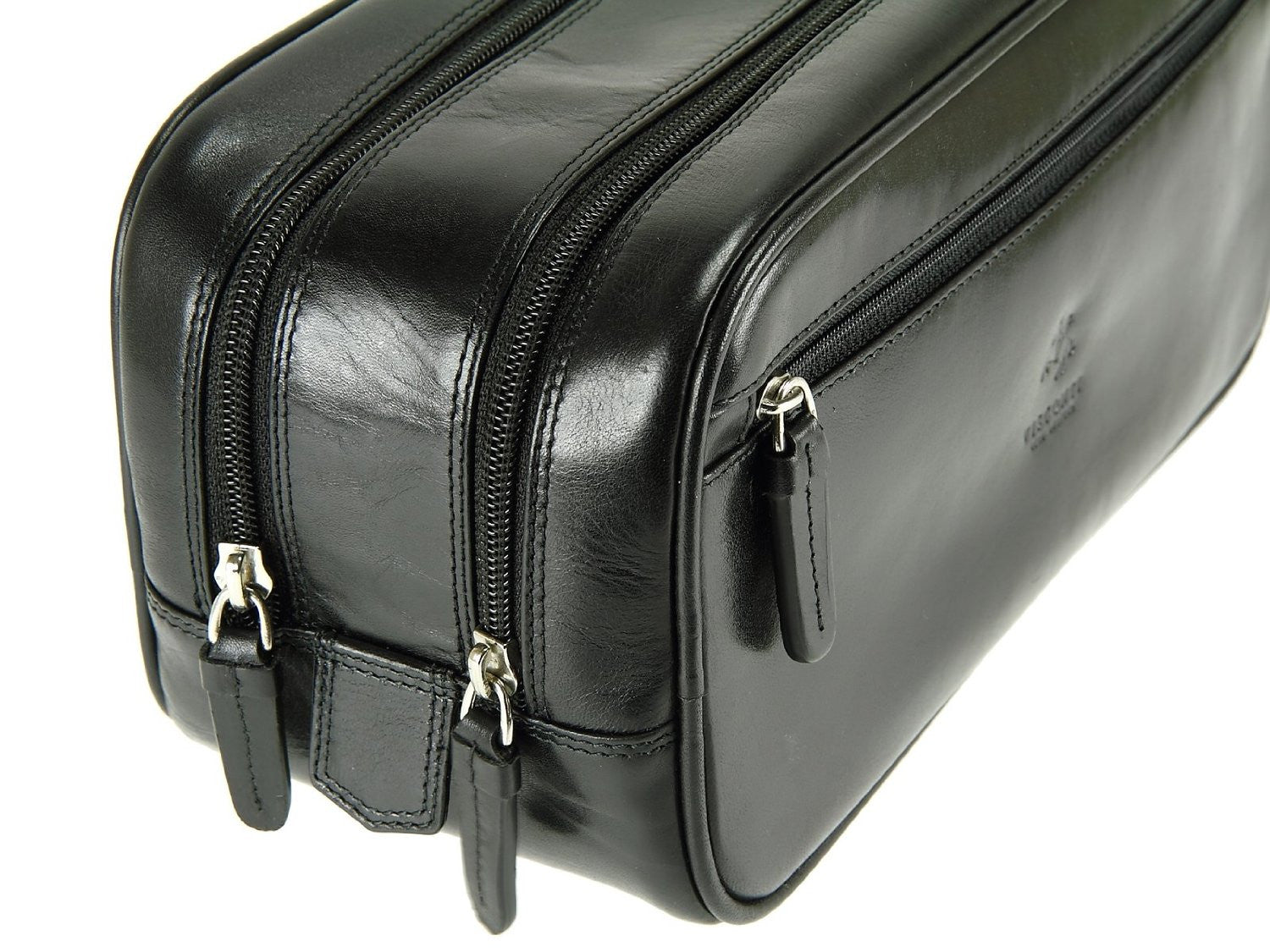 Он незаменим для деловых, активных , много путешествующих и следящих за собой мужчин. Наряду с кошельком, ремнем, часами, сумкой, данный аксессуар становится все более популярным у мужчин. В нем вы легко разместите все необходимые туалетные и косметические принадлежности. Выполнен из очень прочной высококачественной глянцевой телячьей кожи наппа. Цвет - итальянский черный.