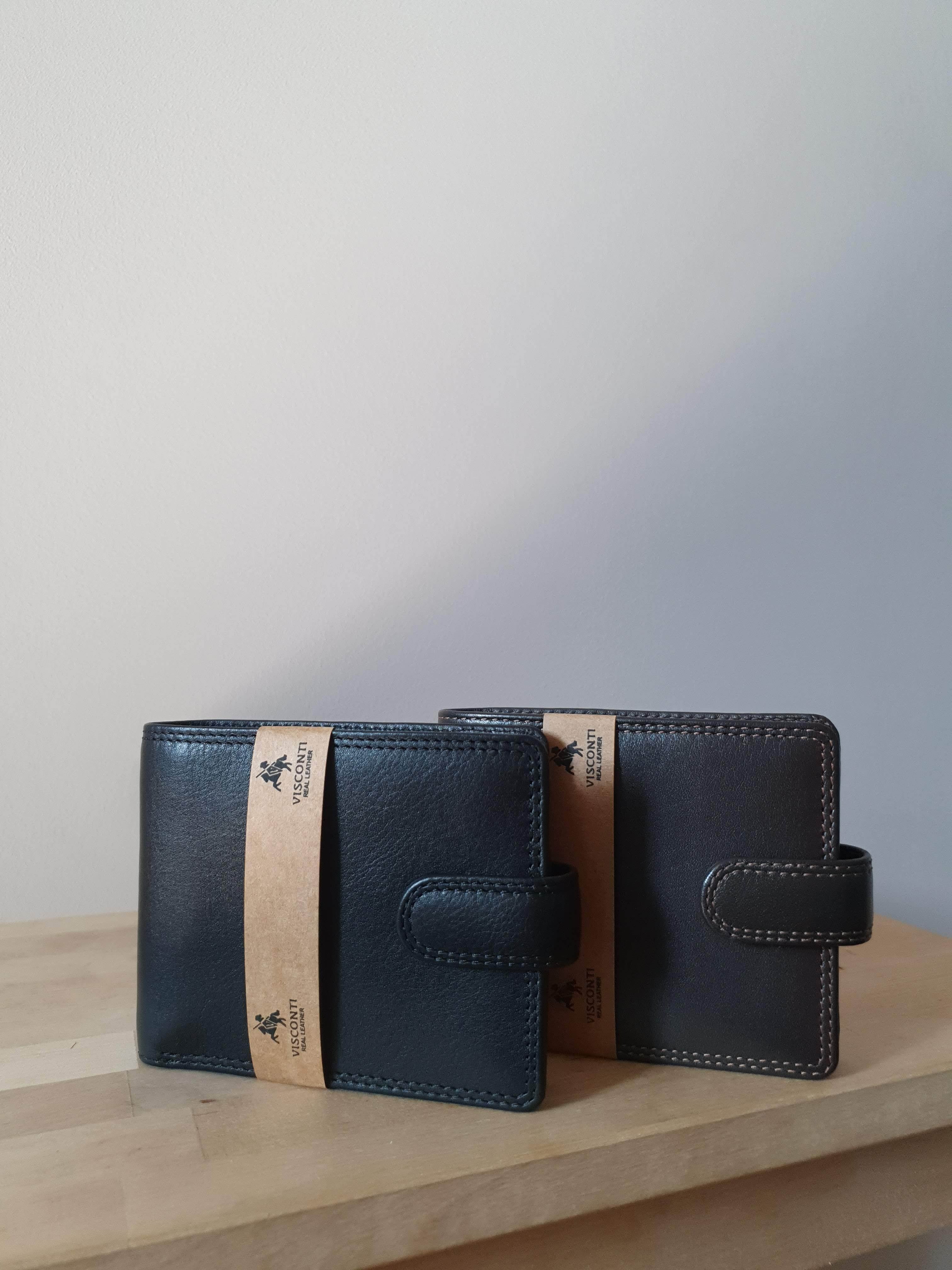 Черный мужской кошелек на кнопке Visconti HT13 - Strand (Black)