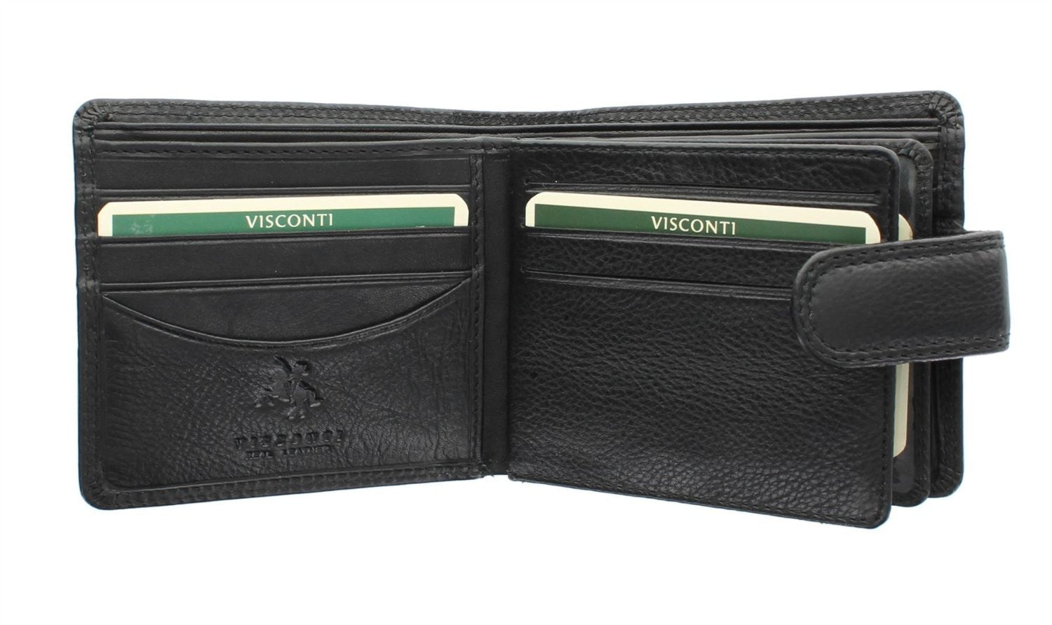 - Два отдела для купюр с тканевой подкладкой, брендированной логотипами Visconti;