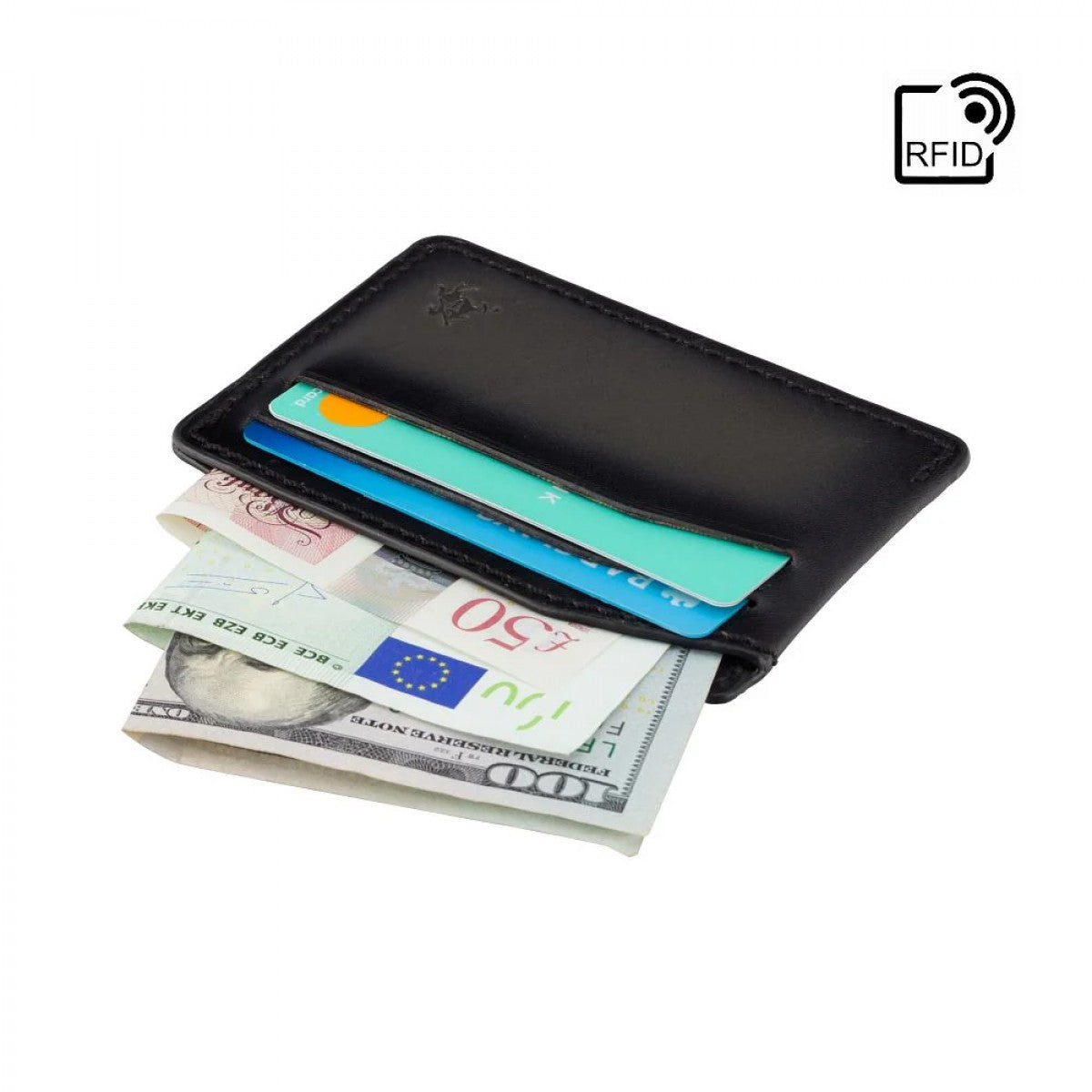 Модель компактного мужского картхолдера MT86 сможет разместить 4 пластиковых карты и несколько сложенных купюр в узком, плоском кармане.