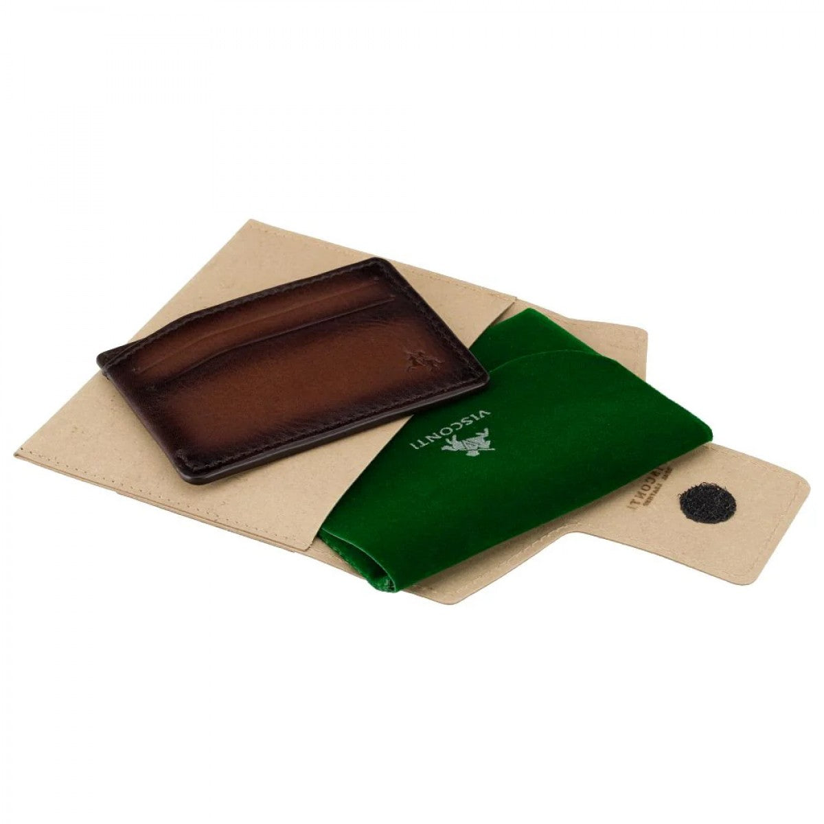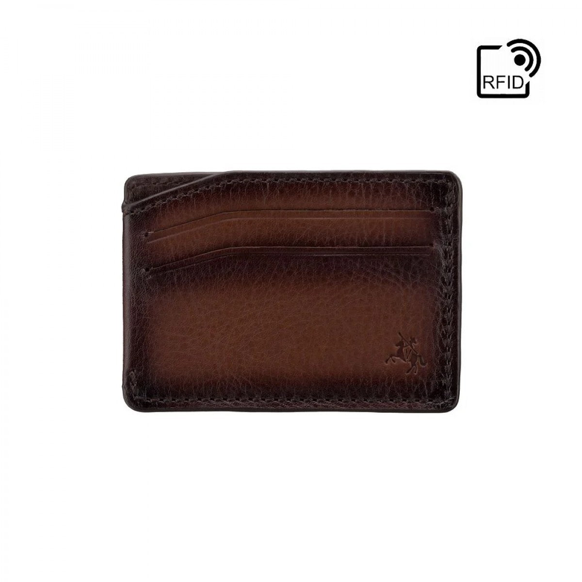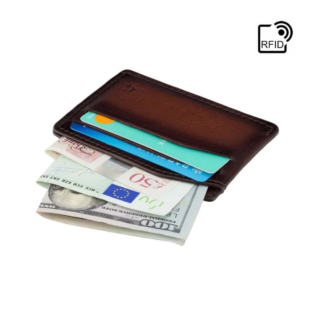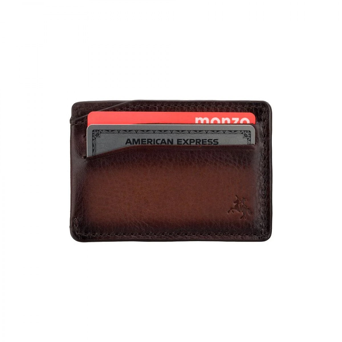 Модель компактного мужского картхолдера MT86 сможет разместить 4 пластиковых карты и несколько сложенных купюр в узком, плоском кармане.