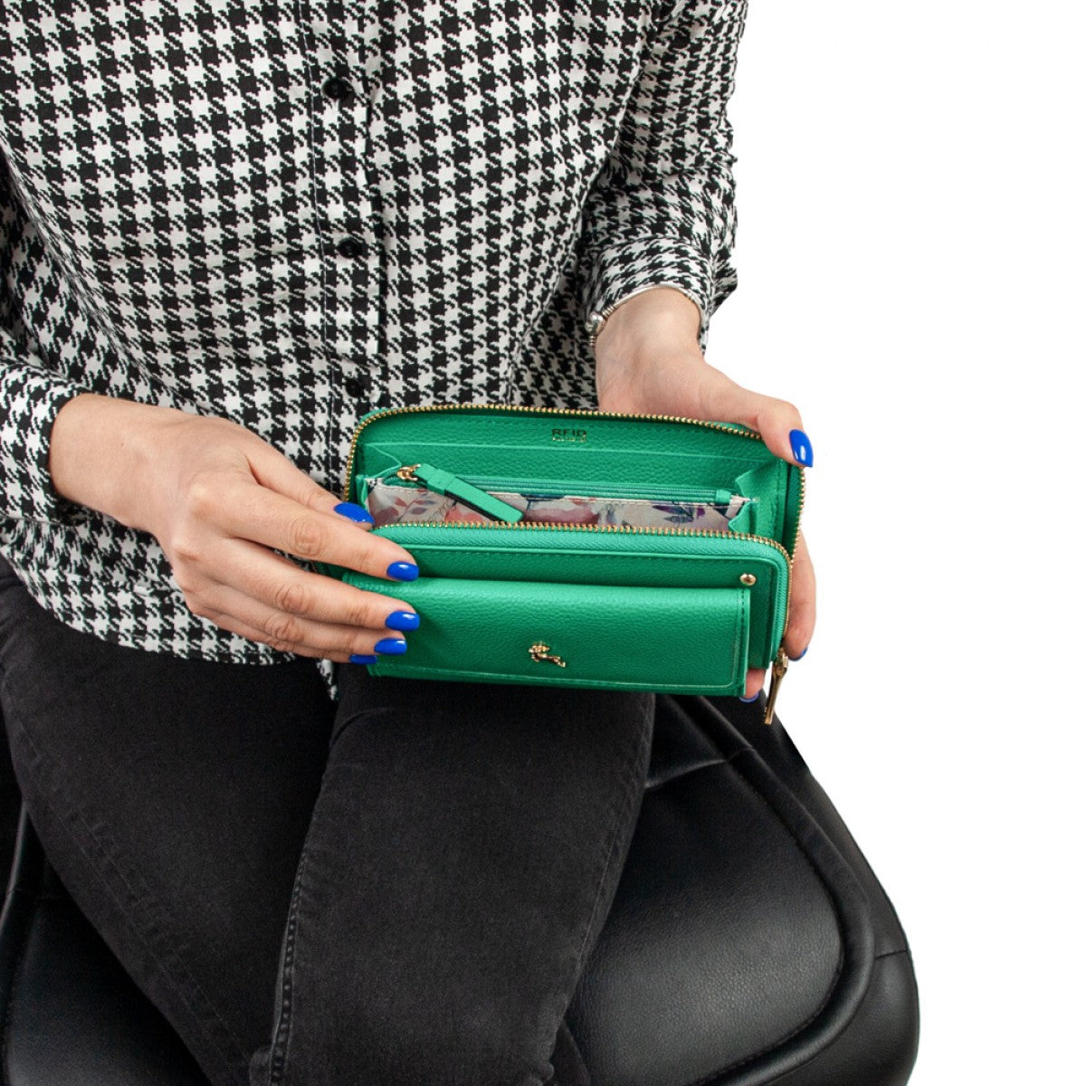 Кошелек женский Ashwood J54 GUMDROP-GREEN выполнен английскими мастерами из высококачественной очень мягкой матовой телячьей кожи. Модель удобна, вместительна и функциональна благодаря наличию четырех отделов для купюр и большим отделением для карточек.