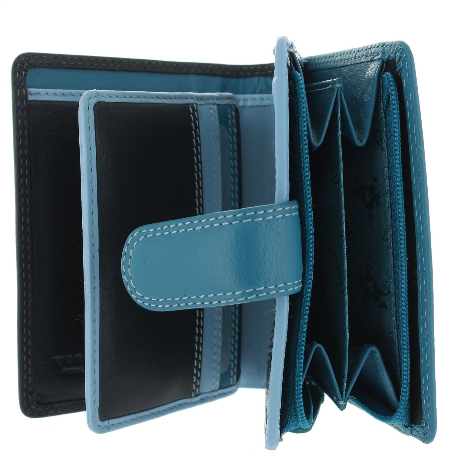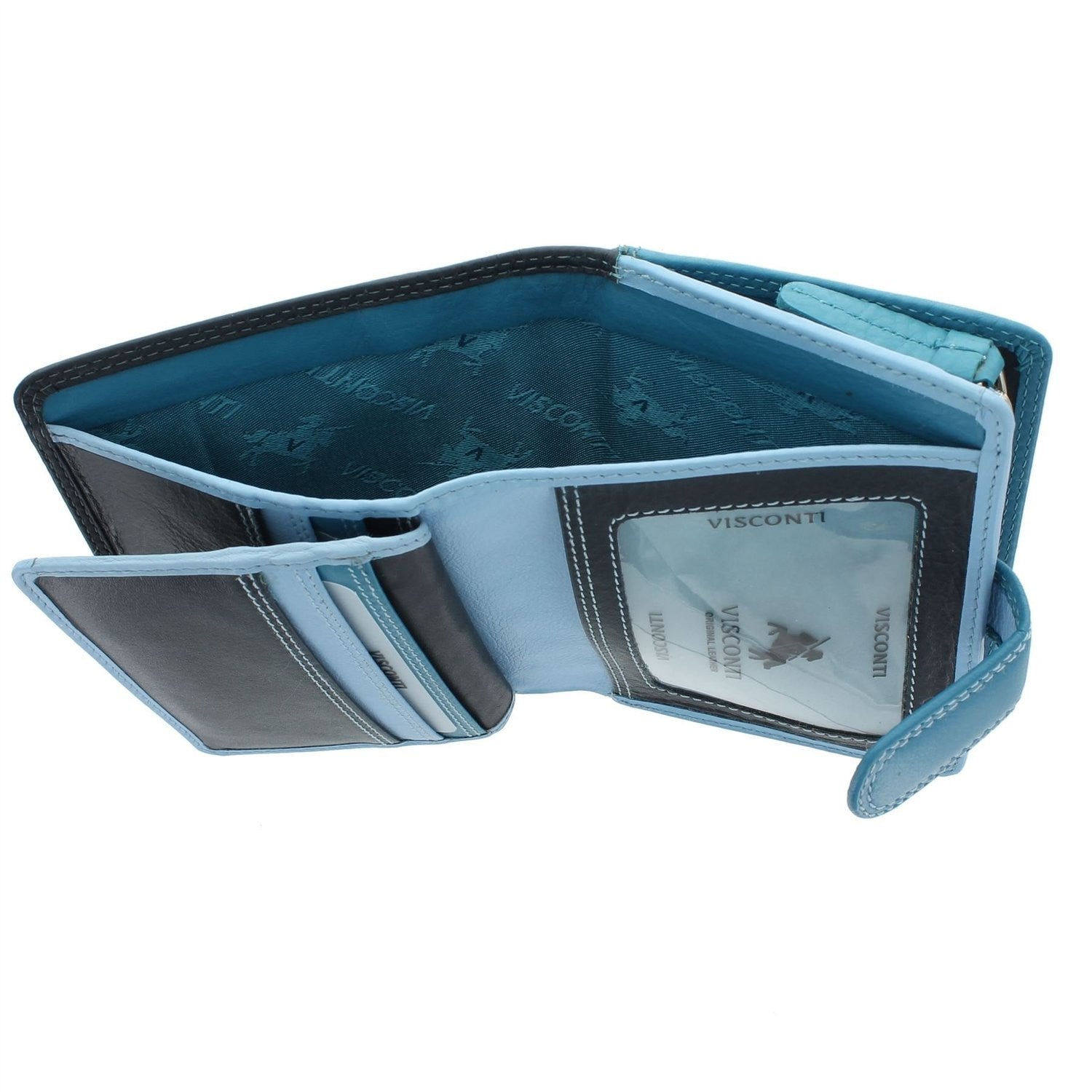 Небольшой женский кошелек из телячьей кожи. Отличительная особенность кошелька Visconti RB40 Bali - в яркой синей расцветке из трех основных оттенков: темно-синего (почти черного), голубого и светло-лазурного.