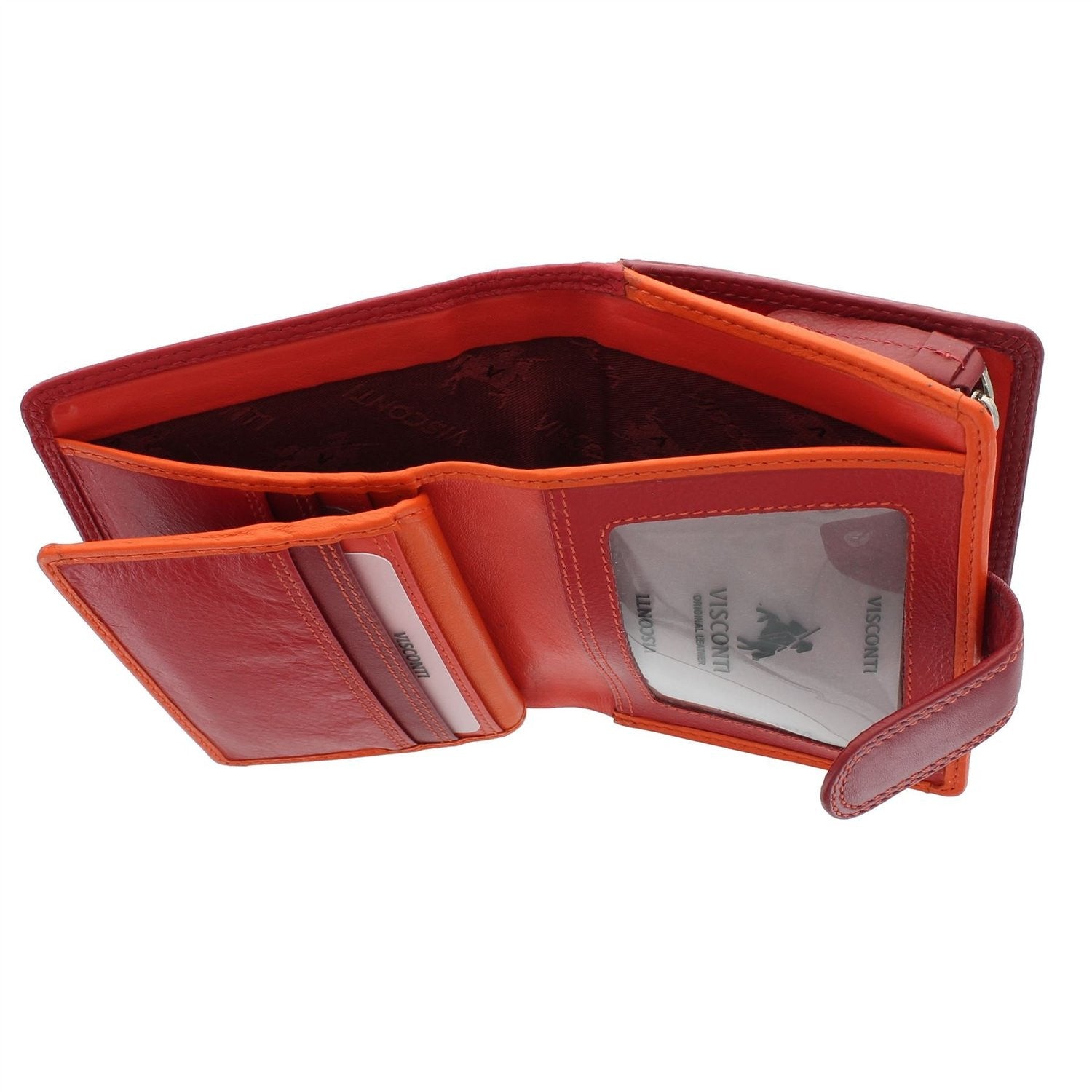 Небольшой женский кошелек из телячьей кожи. Отличительная особенность кошелька Visconti RB40 Bali - в яркой расцветке из трех основных оттенков: красного, оранжевого и бордового.