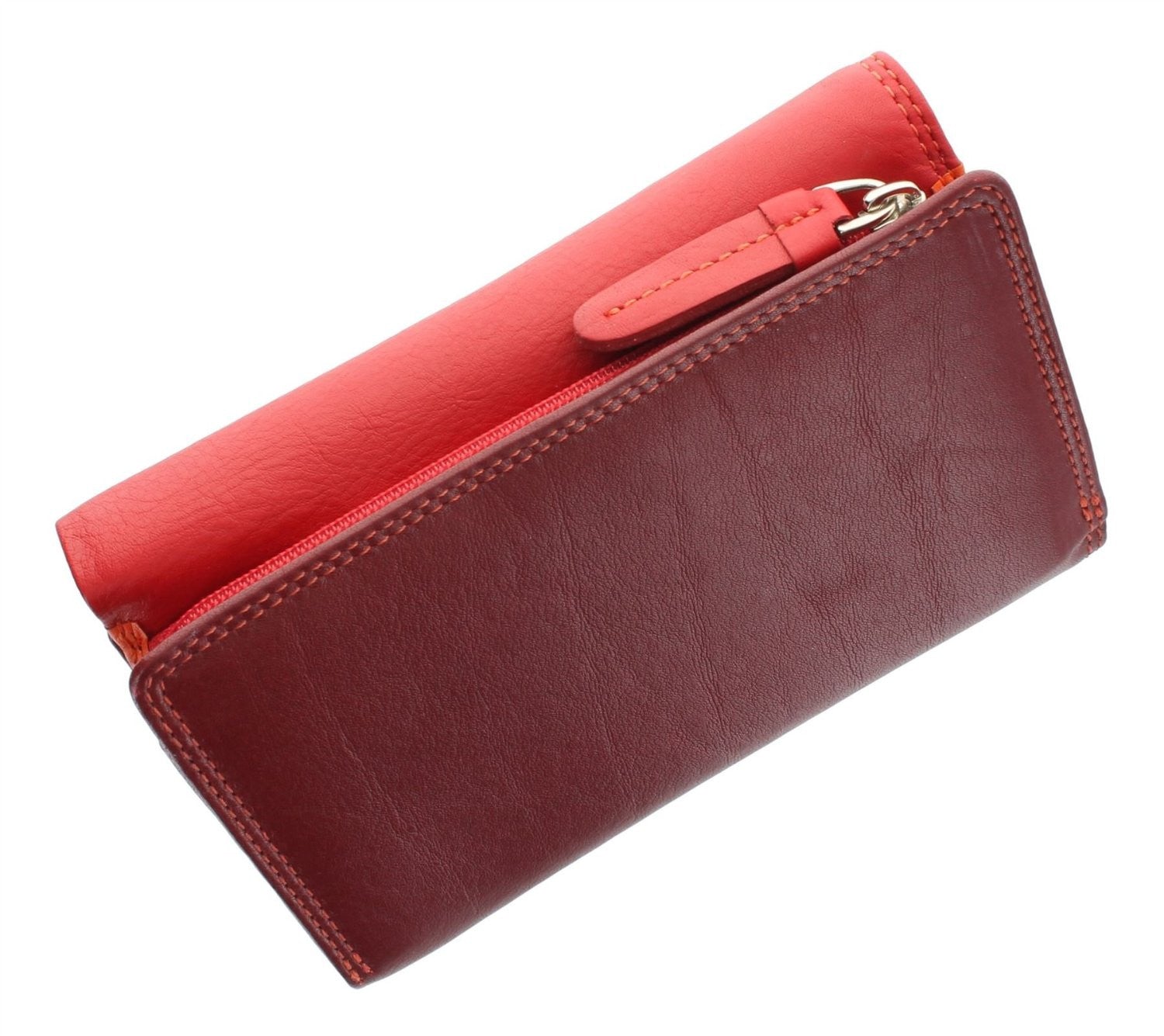 Женский кошелек из телячьей кожи. Отличительная особенность кошелька Visconti Bora - в яркой расцветке из трех основных оттенков: красного, оранжевого и бордового.