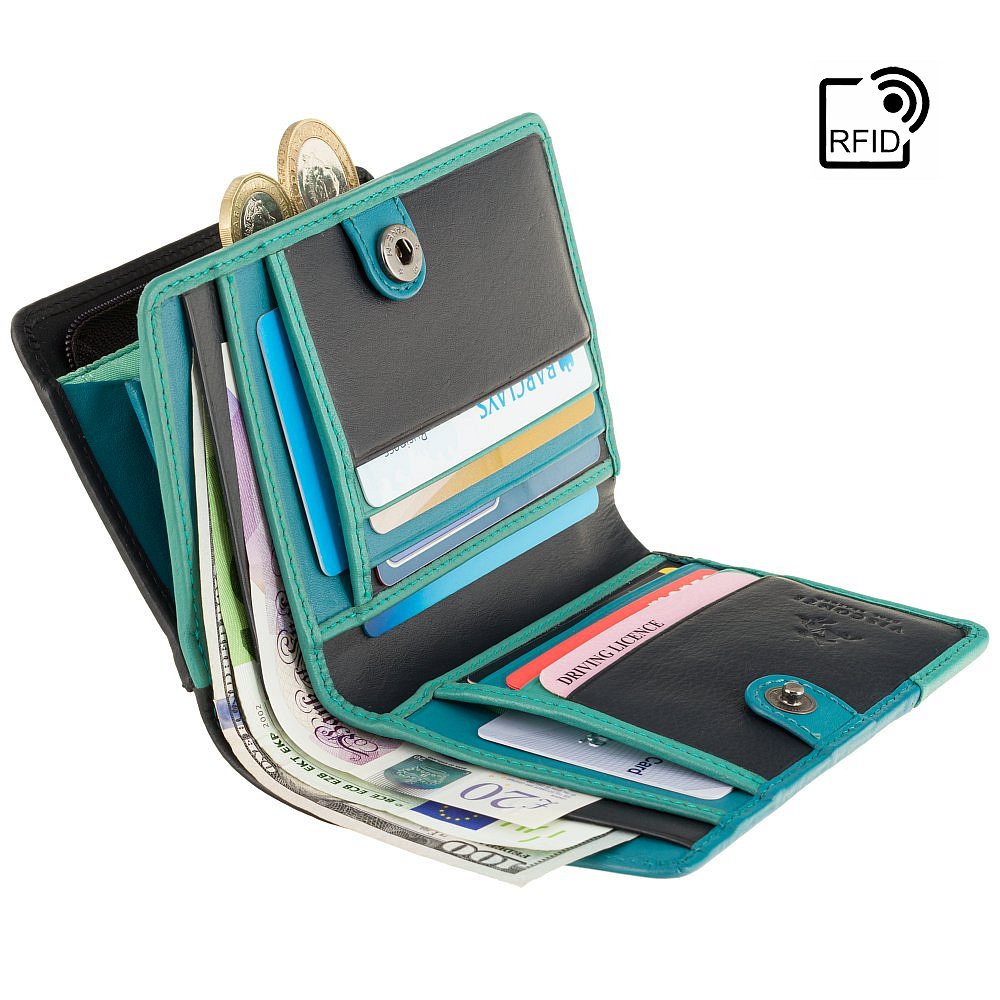 Женский сине-бирюзовый кошелек на кнопке Visconti BRC97 Rosa (Blue)