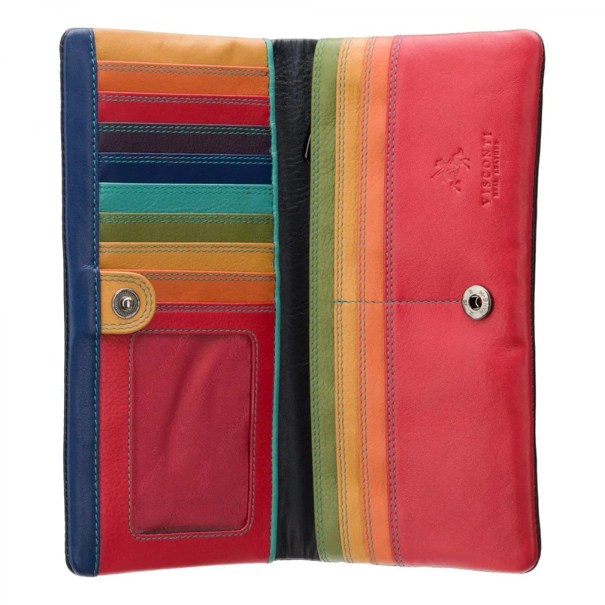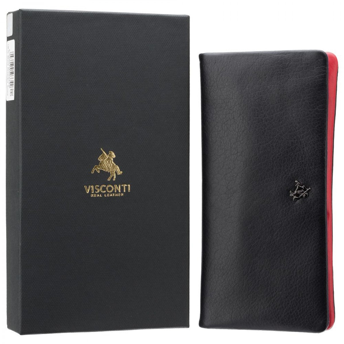 НОВИНКА 2022 Женский черный Visconti CM70 BLACK /RHUMBA в два сложения с застежкой на кнопке и яркой расцветкой внутри. Большое количество отделов, скругленные бесшовные края и мягчайшая кожа не оставит равнодушной ни одного ее владельца, ни зря над коллекцией Como так долго трудились дизайнеры.