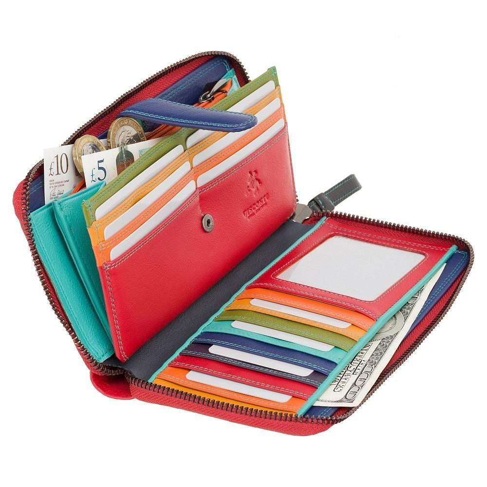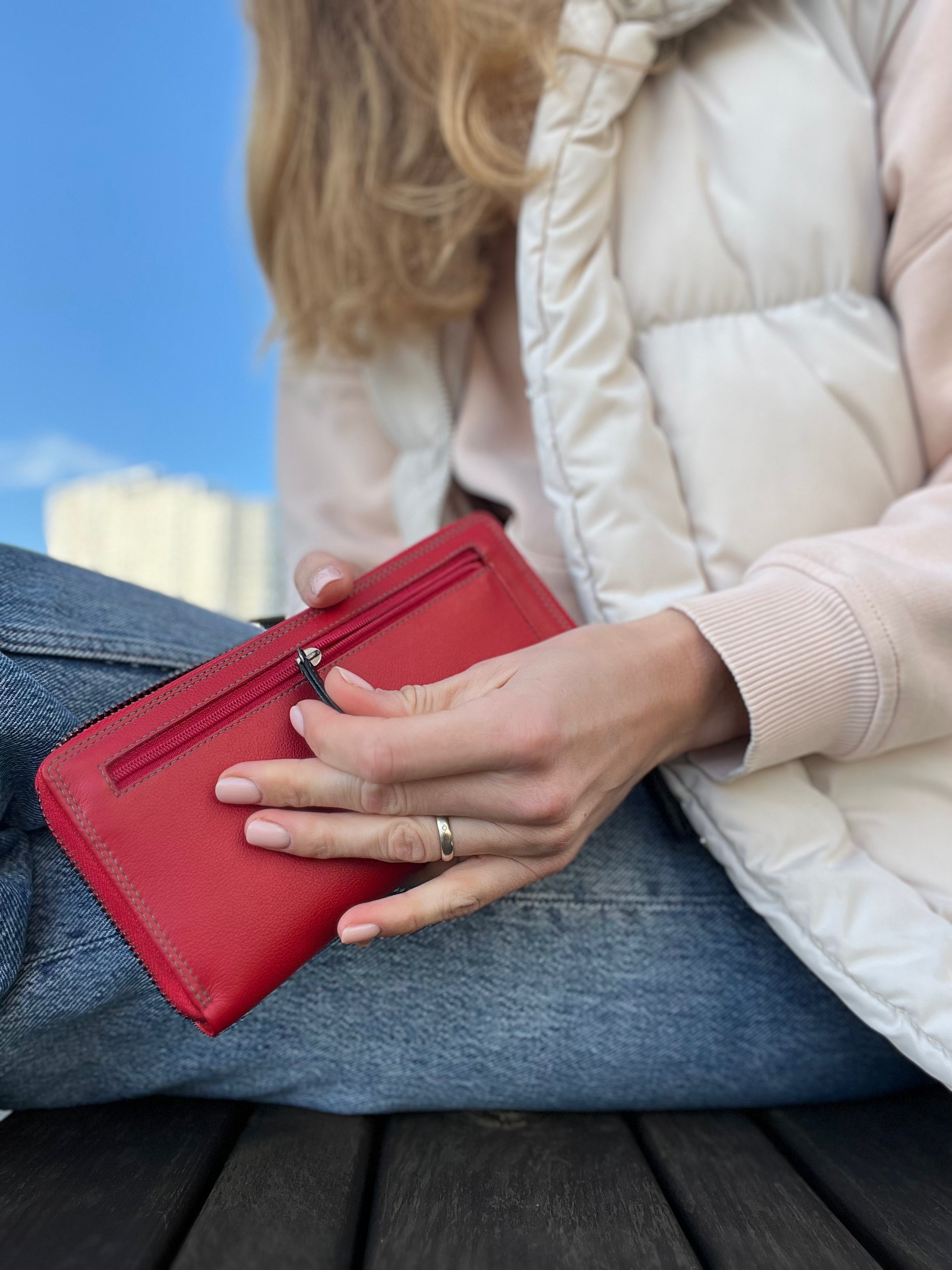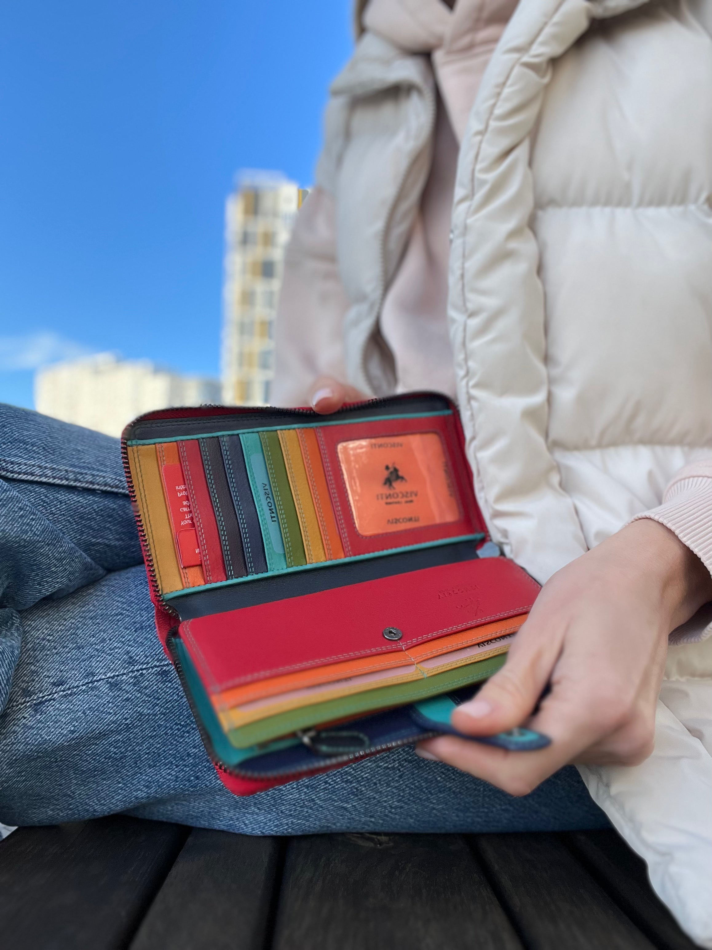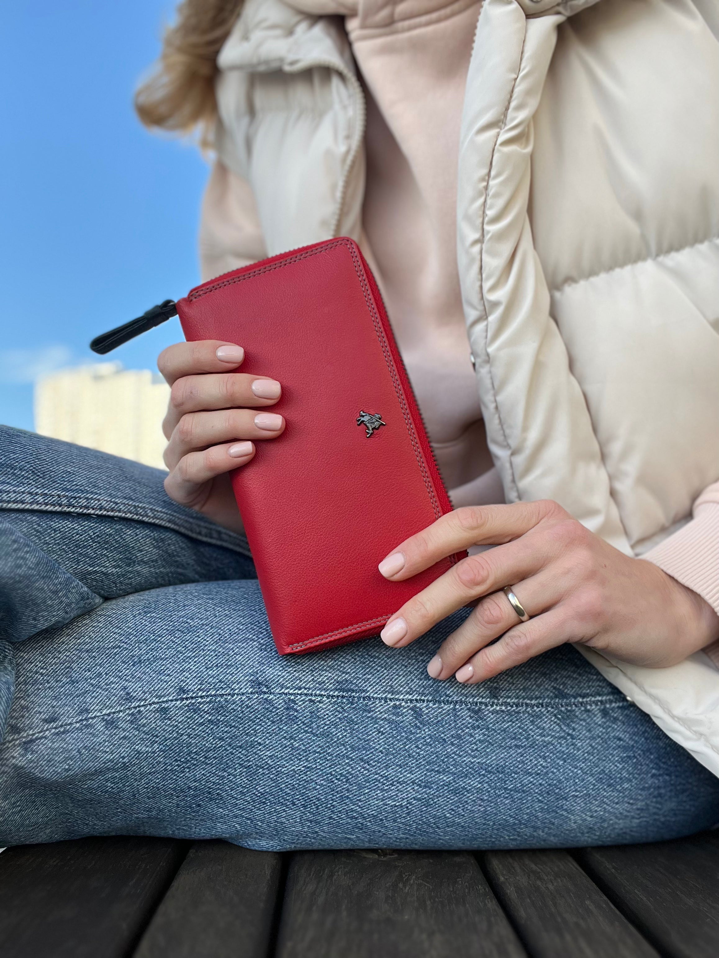 Вместительный женский кошелек-клатч из телячьей кожи. Отличительная особенность серии кошельков Спектр - яркая многоцветная раскраска внутренней части и красный, яркий внешний дизайн. Представленная модель многофункциональна, позволяет вместить множество карточек, мелких предметов, документов. Безопасность содержимого кошелька обеспечена наличием молний и фиксирующих клапанов. Также модель оснащена защитой от считывания бесконтактных пластиковых карт (защита RFID чипов).
