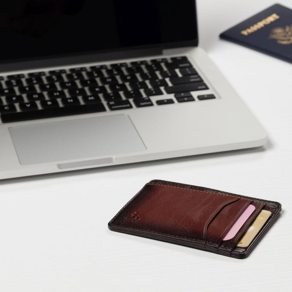 Картхолдер із вінтажної колекції Atelier (Ательє). Особливістю серії є додаткова ручна обробка шкіри, що надає "старий" характер і глибину. Кожен гаманець проходить через руки досвідчених майстрів, які індивідуально та майстерно полірують краї гаманців воском та оліями, чим створюється унікальне оздоблення та колір, властиві лише самій природі. Модель компактного чоловічого картхолдера AT67 зможе розмістити 5 пластикових картки та кілька складених купюр у вузькій, плоскій кишені.