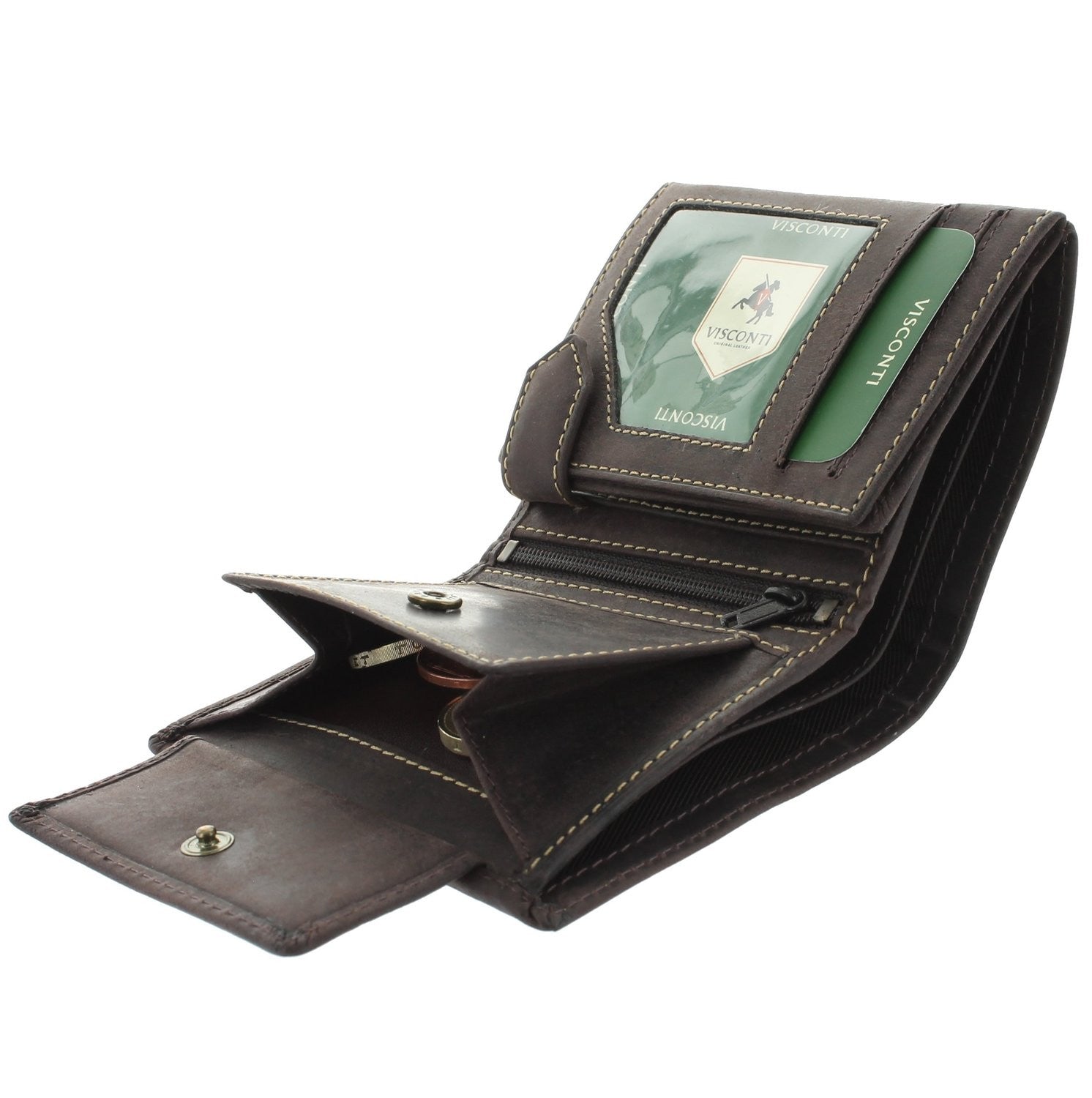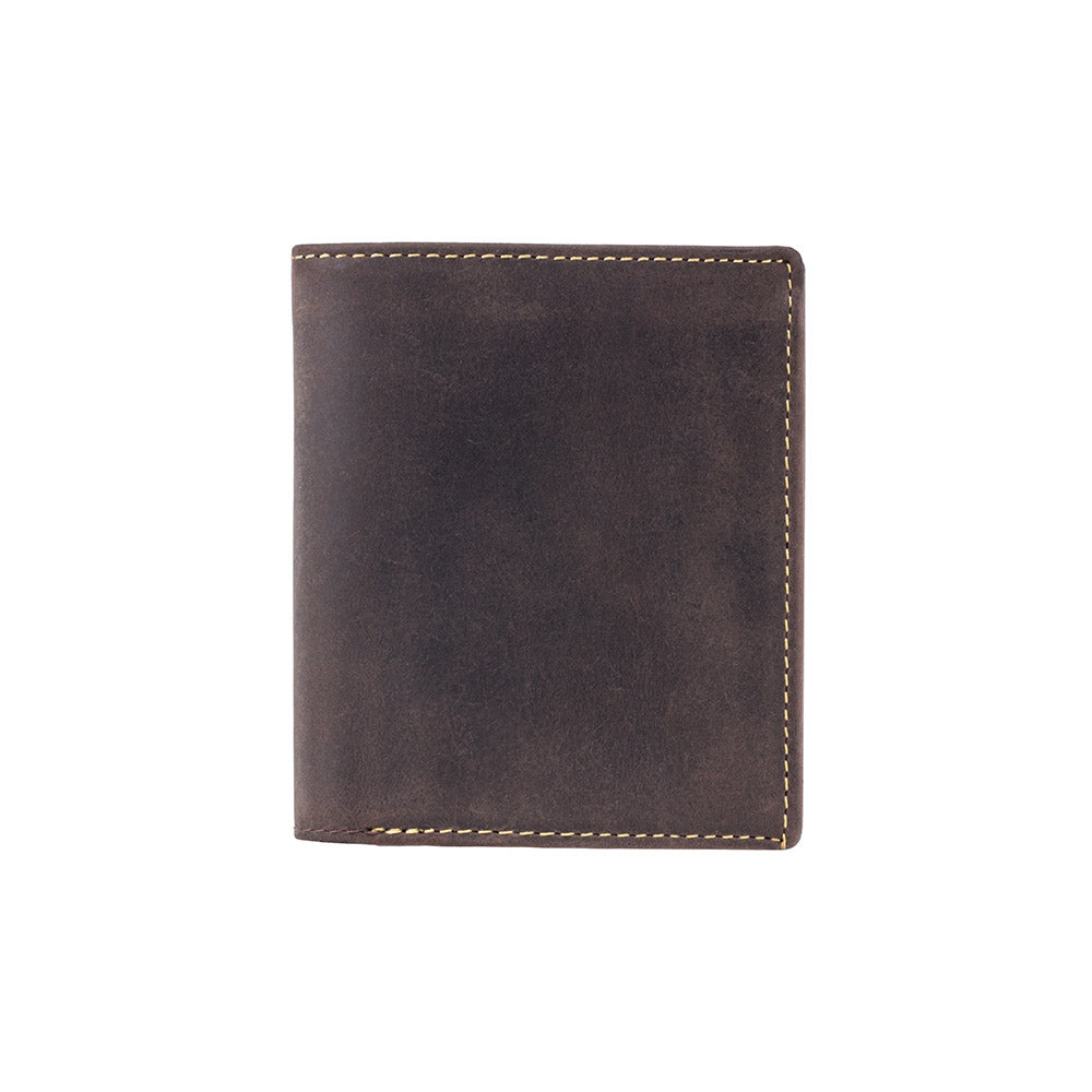 Чоловічий гаманець з м'якої телячої шкіри із просоченням. Висока зносостійкість, що виділяється серед інших моделей наявністю трьох прозорих відділень для документів та фото. Колір оливково-коричневий.