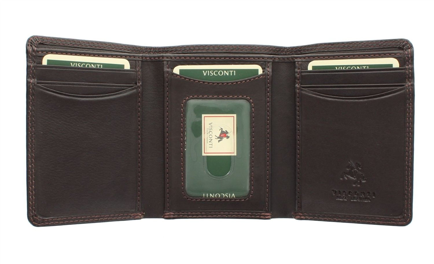 - Один большой отдел для купюр с тканевой подкладкой, брендированной логотипами Visconti,