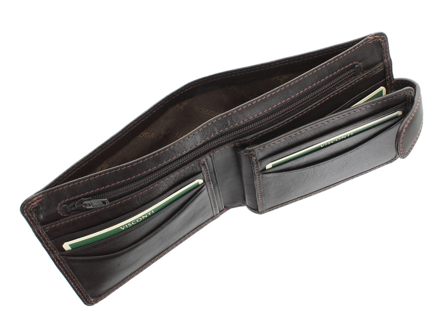 - Один відділ для купюр з тканинною підкладкою, брендованою логотипами Visconti,