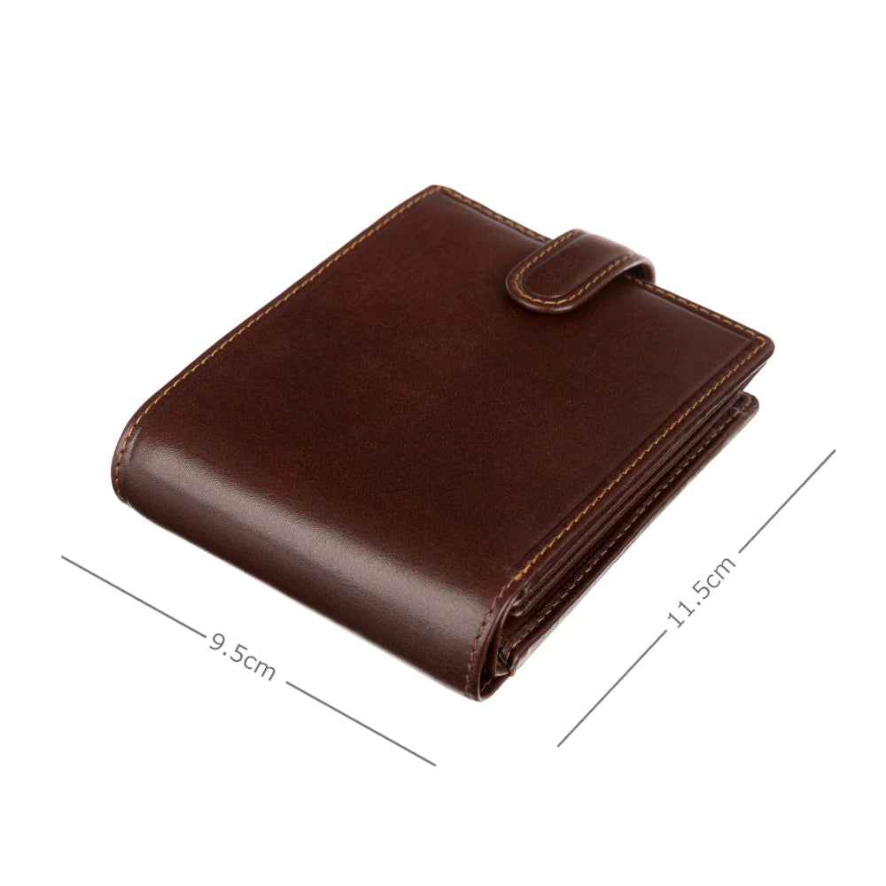 Багатофункціональний чоловічий гаманець із гладкої, приємної на дотик, телячої шкіри. По зовнішньому та внутрішньому периметру гаманець прошитий міцною капроновою ниткою. Безліч різних відділень під картки, посвідчення та інше. Закривається на застібку із кнопкою. Має захист від зчитування безконтактних карток з RFID.