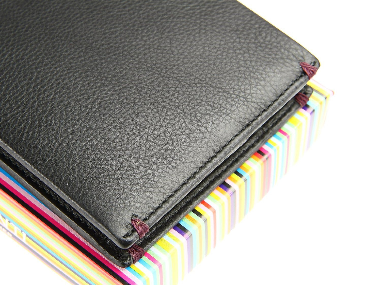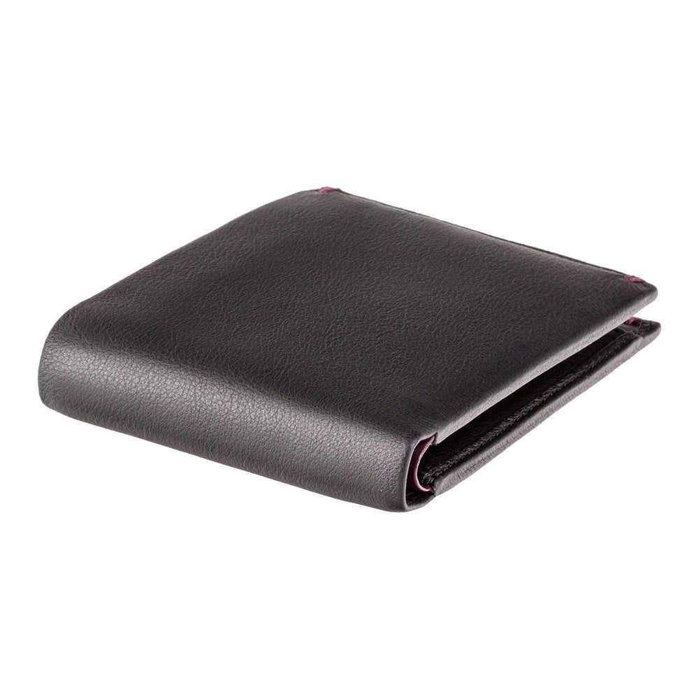 Чоловічий гаманець із м'якої матової телячої шкіри. Оригінальне оздоблення ниткою контрастного кольору на лицьовій стороні та внутрішня частина благородного винного кольору. 4 відділення для карт та монетниця на блискавці.