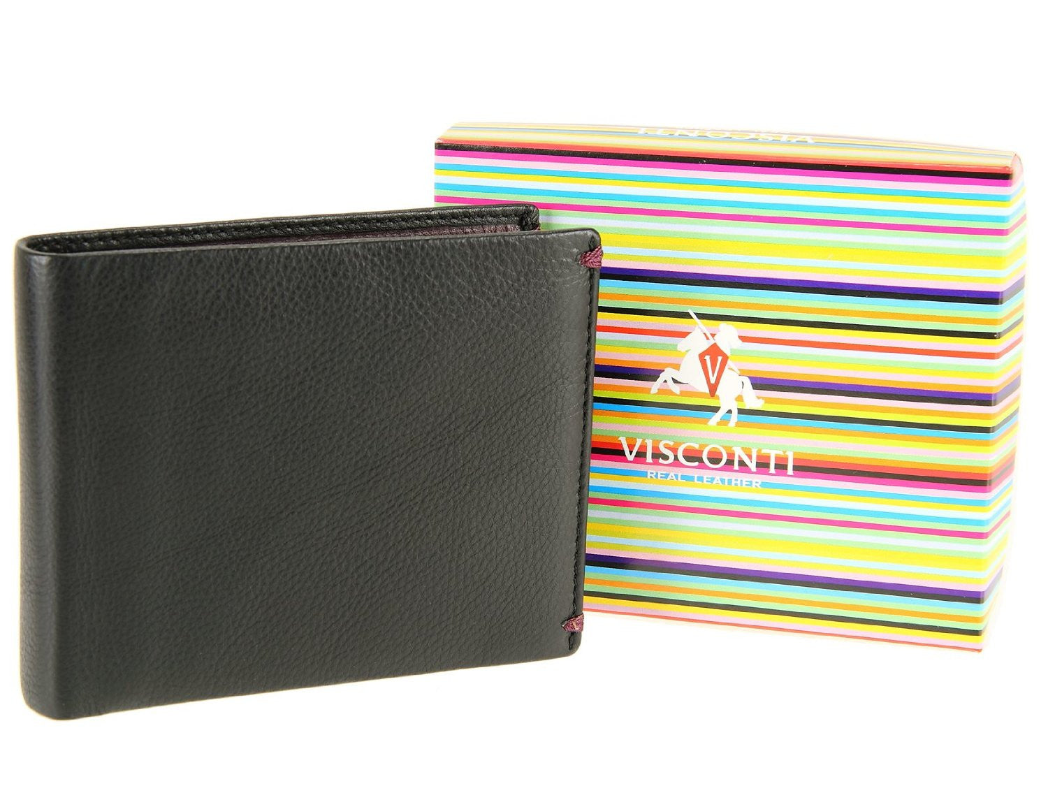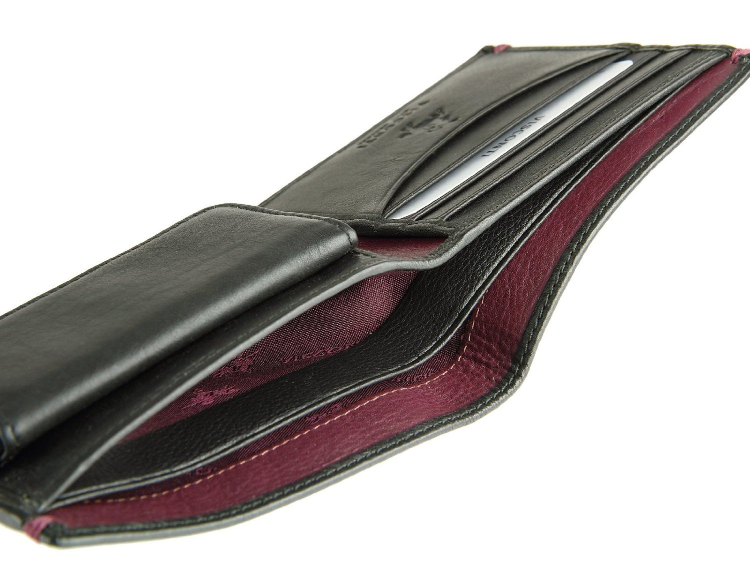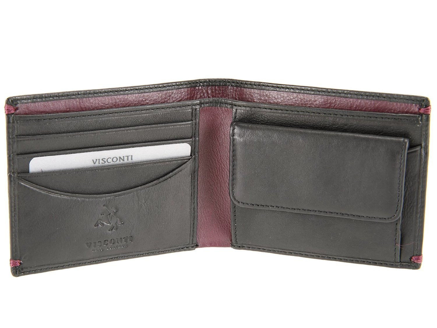 - Два отделения для купюр с прочной тканевой подкладкой Visconti винного цвета;
