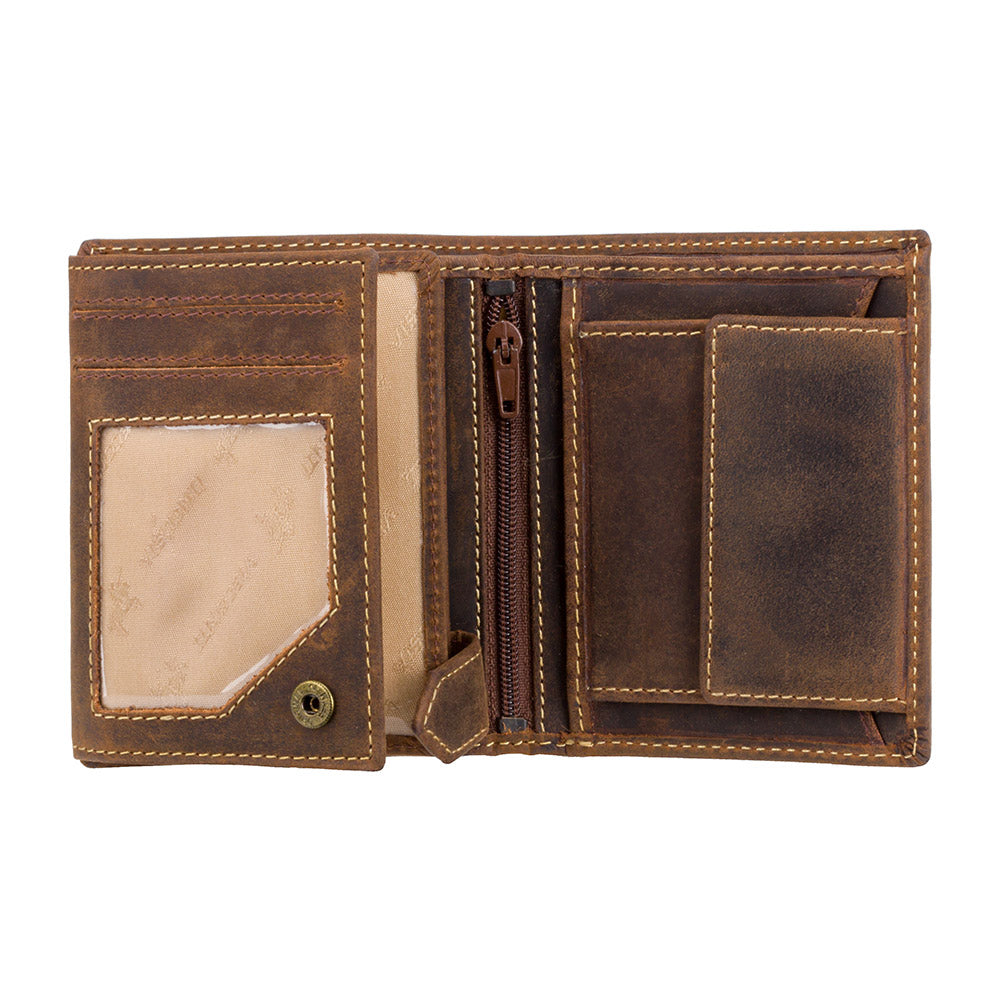 Чоловічий гаманець з м'якої телячої шкіри із просоченням. Висока зносостійкість, що виділяється серед інших моделей наявністю трьох прозорих відділень для документів та фото. Колір пісочний.
