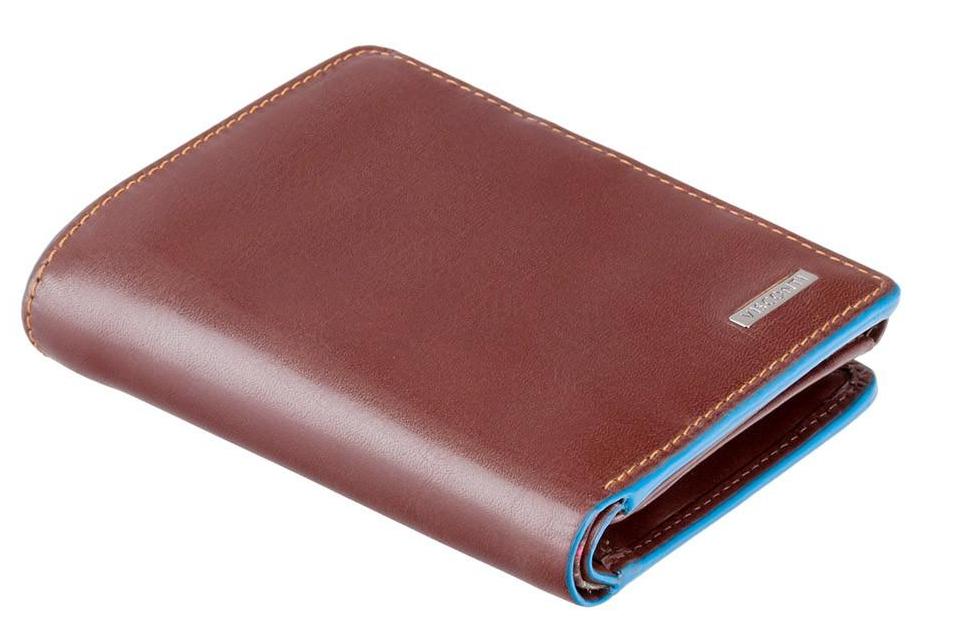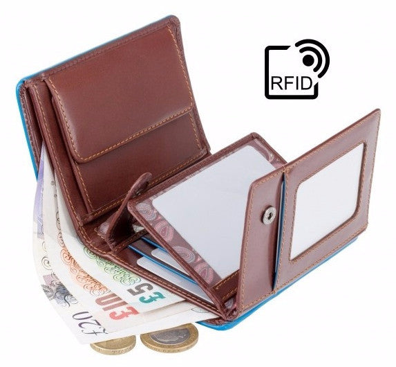 Коричневий чоловічий гаманець у три складання з синьою облямівкою Visconti ALP87 Ralph (Brown) із захистом RFID
