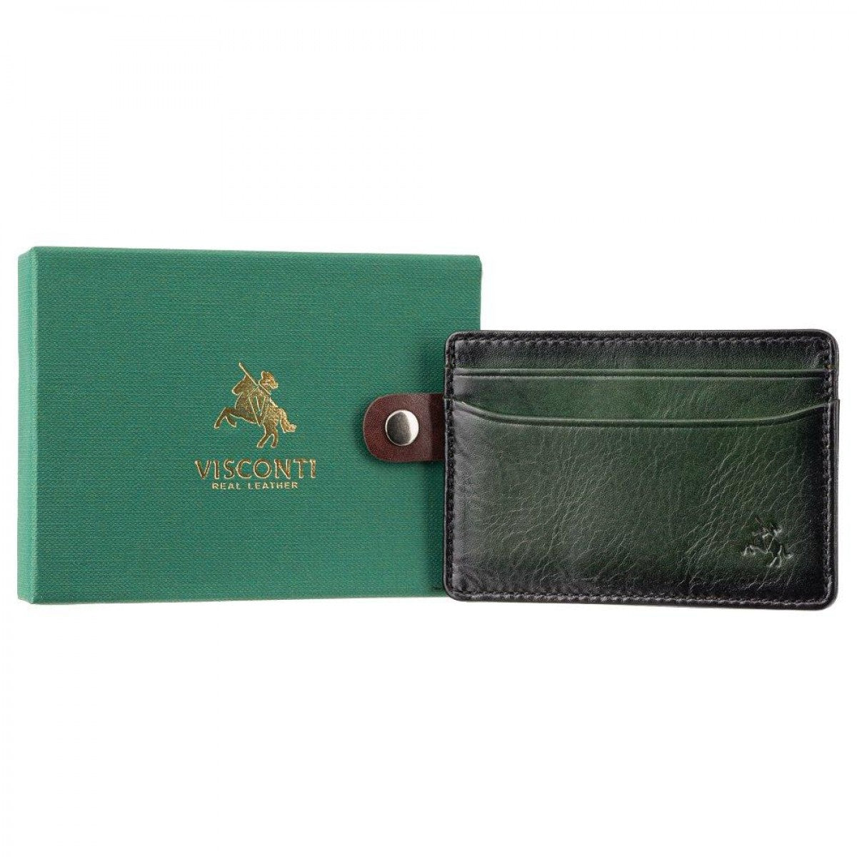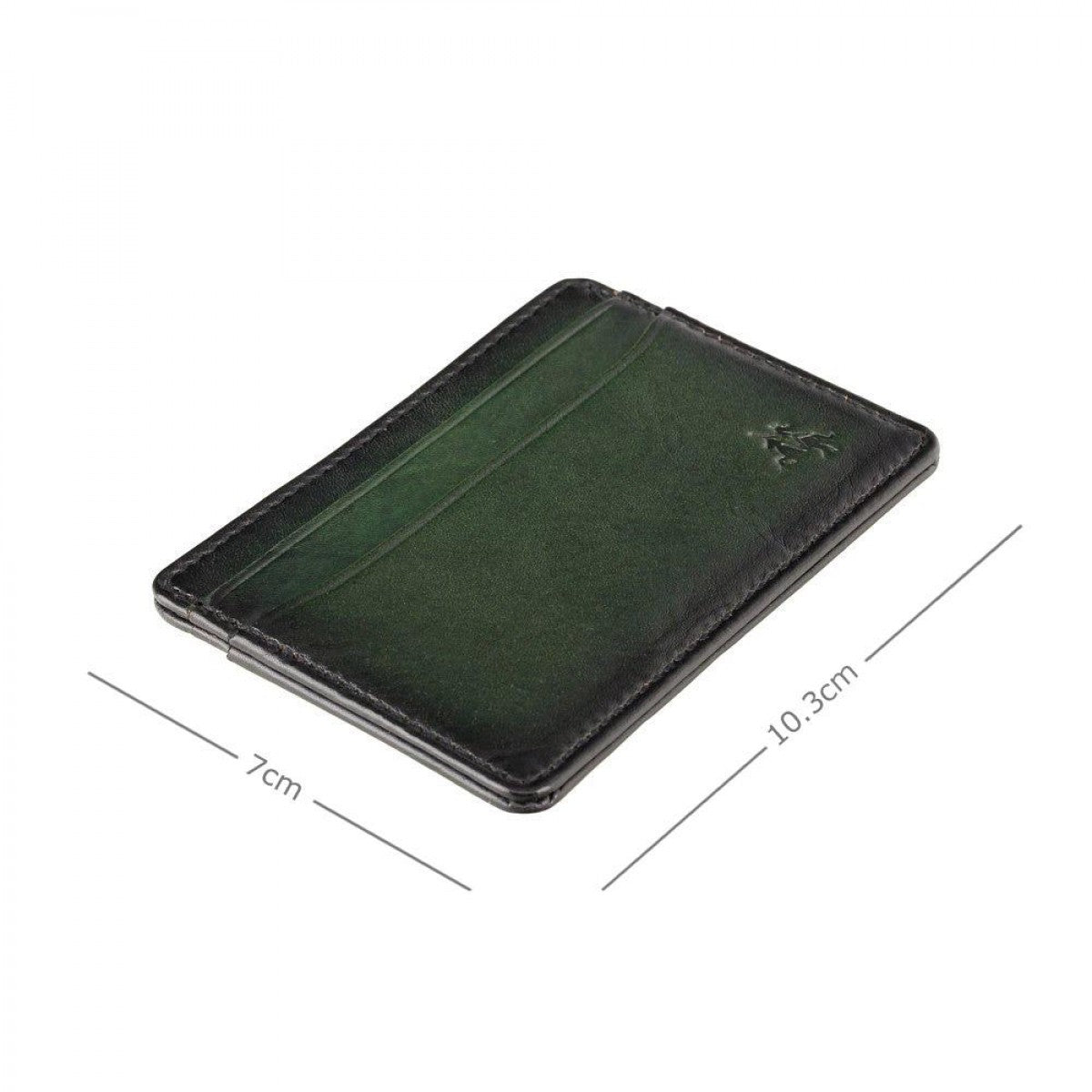 Модель компактного чоловічого картхолдера AT54 GREEN зможе розмістити 4 пластикові карти і кілька складених купюр у вузькій, плоскій кишені.