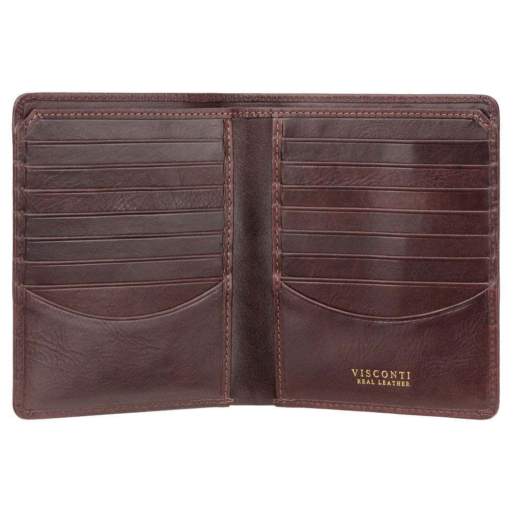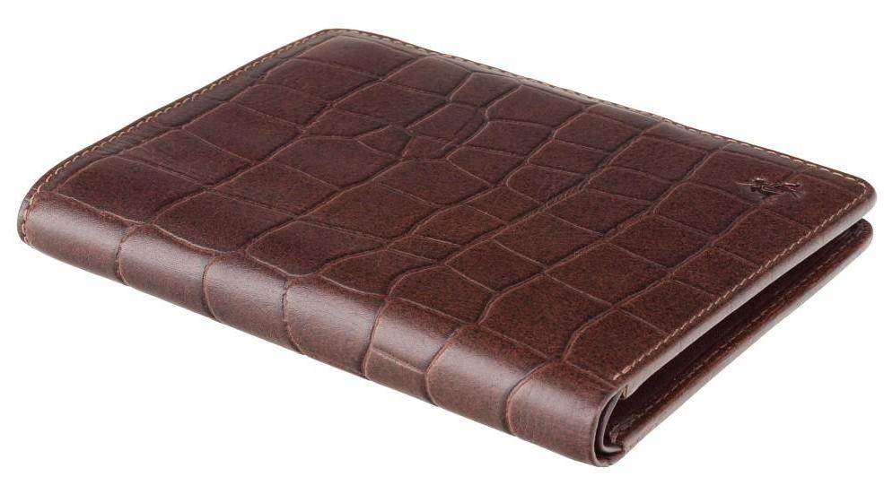 Багатофункціональний чоловічий гаманець із дуже міцної телячої шкіри рослинного дублення з тисненням під крокодила. Чудовий вибір подарунку для солідного чоловіка. Модель має вбудований RFID-чіп для ваших банківських карток та документів від несанкціонованого доступу. Зовні має видавлений у шкірі фірмовий логотип Visconti. Модель випускається у трьох кольорах.