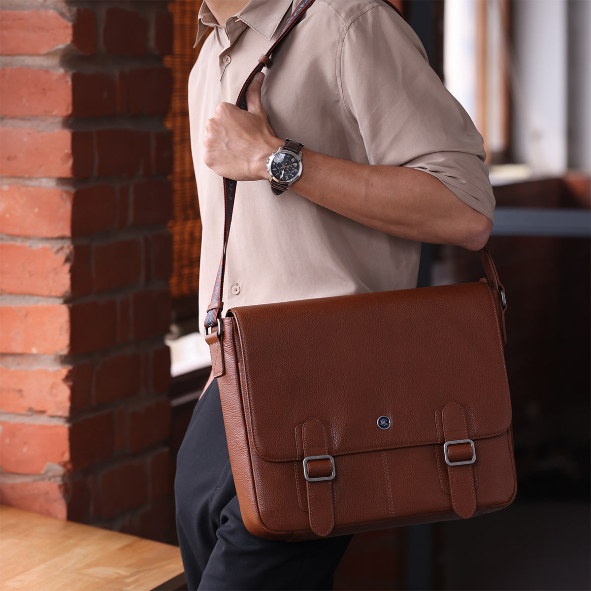 Современная, стильная и хорошо организованная бизнес-сумка для ноутбука 14 дюймов от британского бренда Brampton London. За счет разделителей внутри сумки легко поддерживать порядок, так как есть внутренние отделения для ваших предметов первой необходимости, а также для ноутбука, мобильного телефона и т. д.