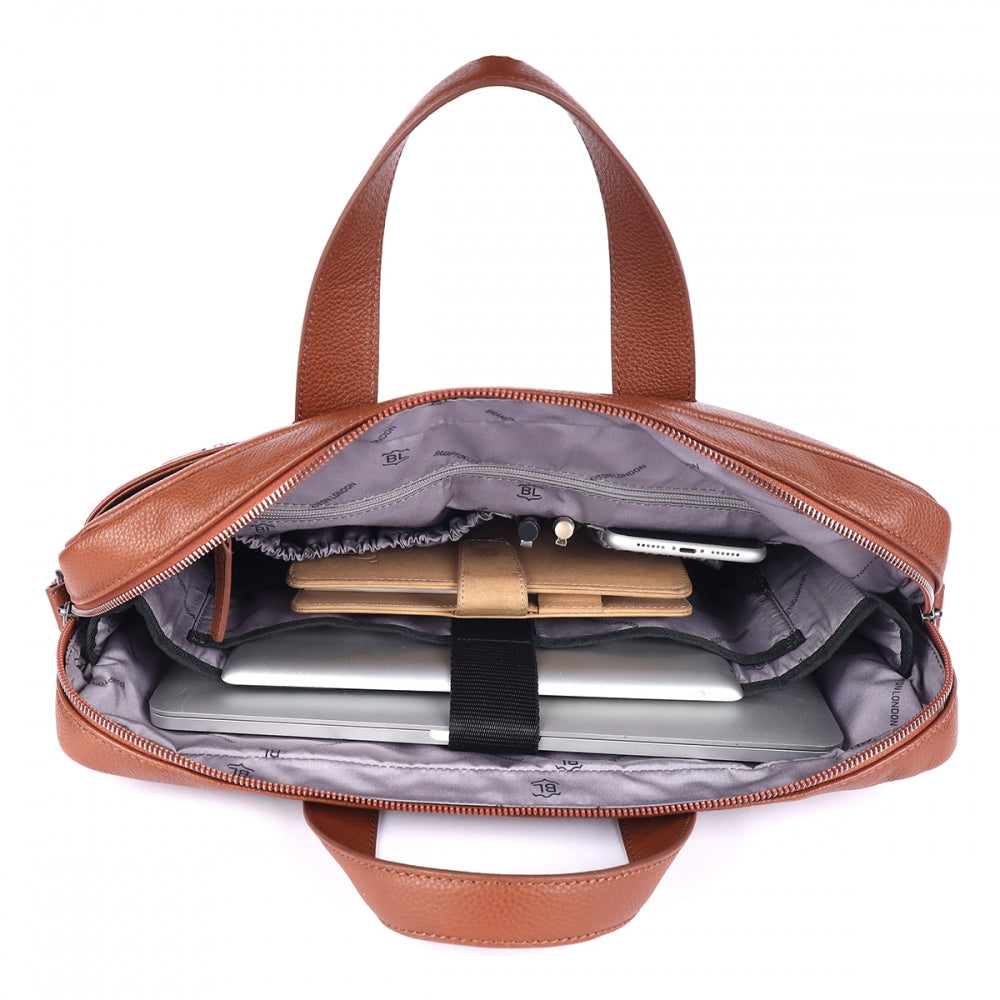 Современная, стильная и хорошо организованная бизнес-сумка для ноутбука 15,6 дюймов от британского бренда Brampton London. За счет разделителей внутри сумки легко поддерживать порядок, так как есть внутренние отделения для ваших предметов первой необходимости, а также для ноутбука, мобильного телефона и т. д.