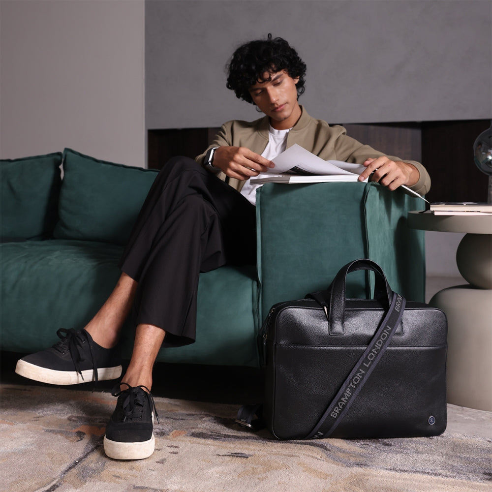 Современная, стильная и хорошо организованная бизнес-сумка для ноутбука 15,6 дюймов от британского бренда Brampton London. За счет разделителей внутри сумки легко поддерживать порядок, так как есть внутренние отделения для ваших предметов первой необходимости, а также для ноутбука, мобильного телефона и т. д.