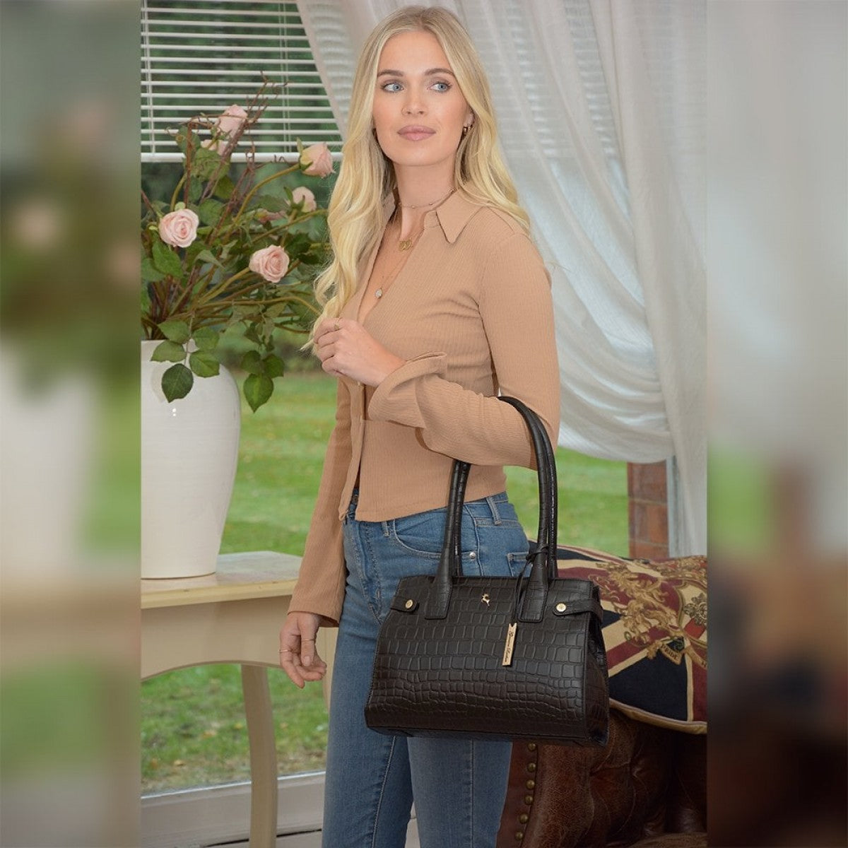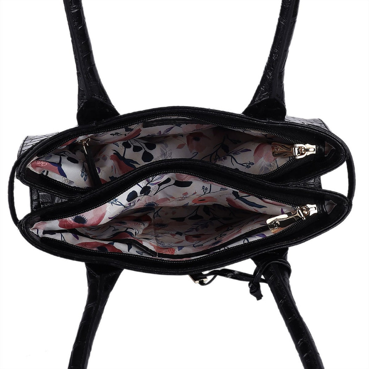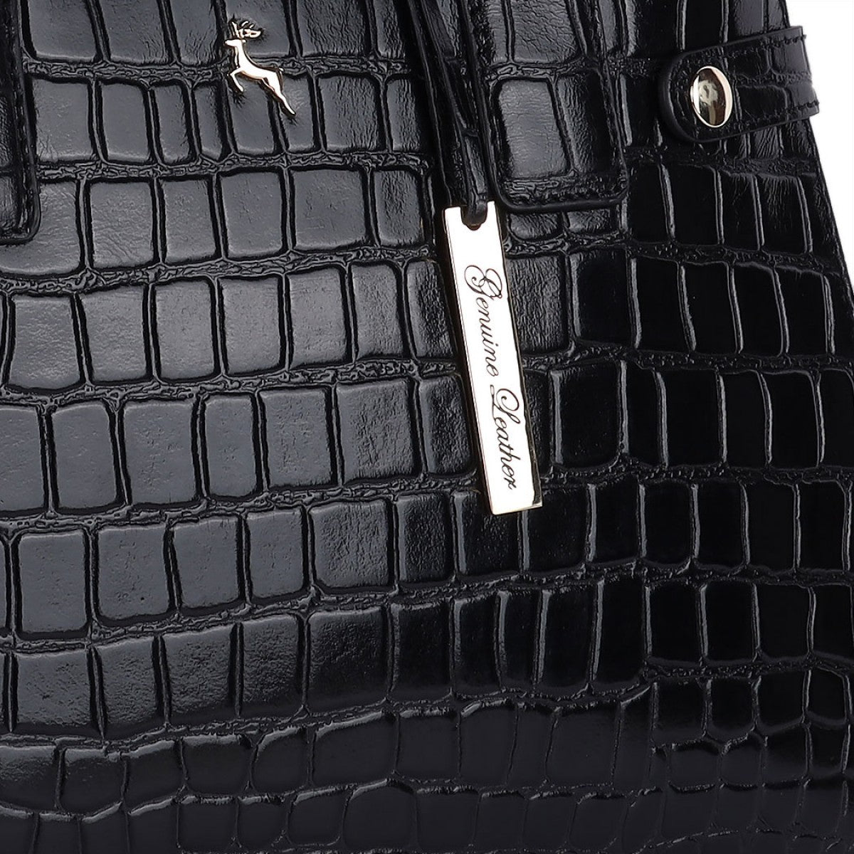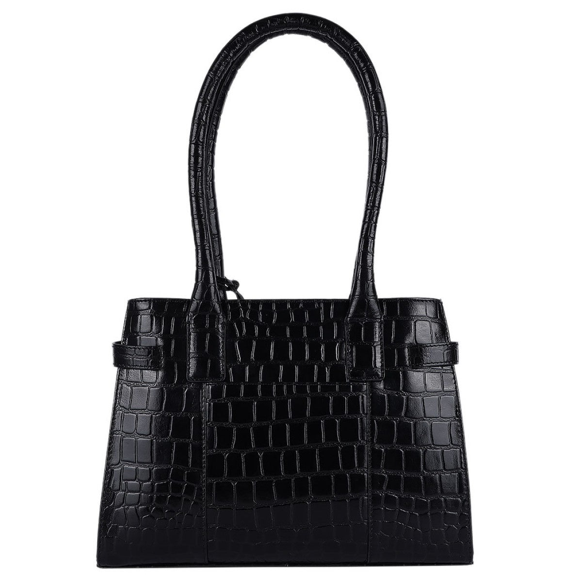 Виконана із глянцевої телячої шкіри з імітацією шкіри крокодила. Завдяки немаленьким ручкам її можна носити як на плечі так і в руці. Закривається на металеву блискавку.