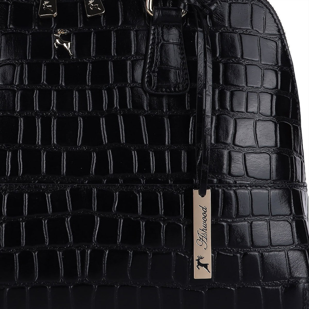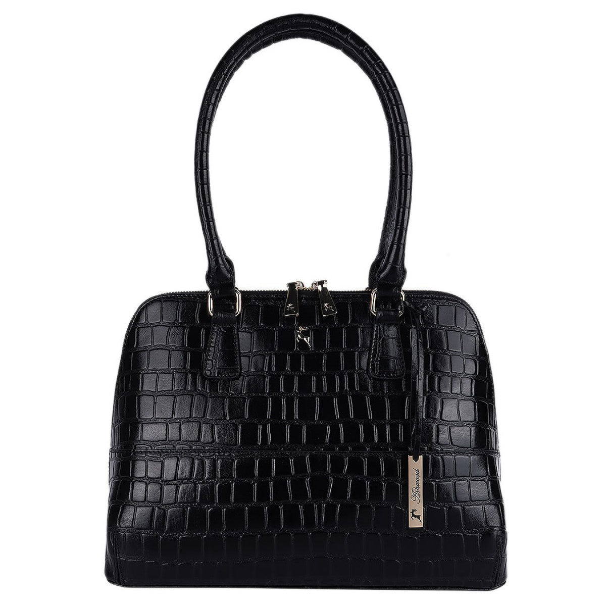 Виконана із глянсової телячої шкіри з імітацією шкіри крокодила. Завдяки немаленьким ручкам її можна носити як на плечі так і в руці. Закривається на металеву блискавку. Зверніть увагу на модель в іншому дизайні, але в такій же шкірі - Ashwood C52