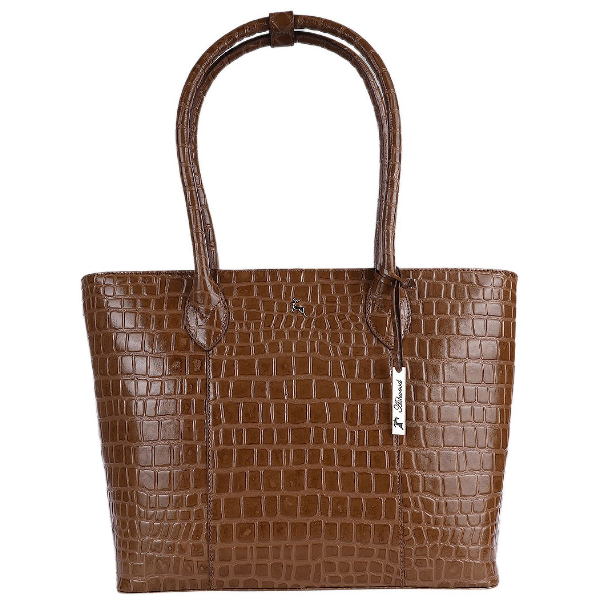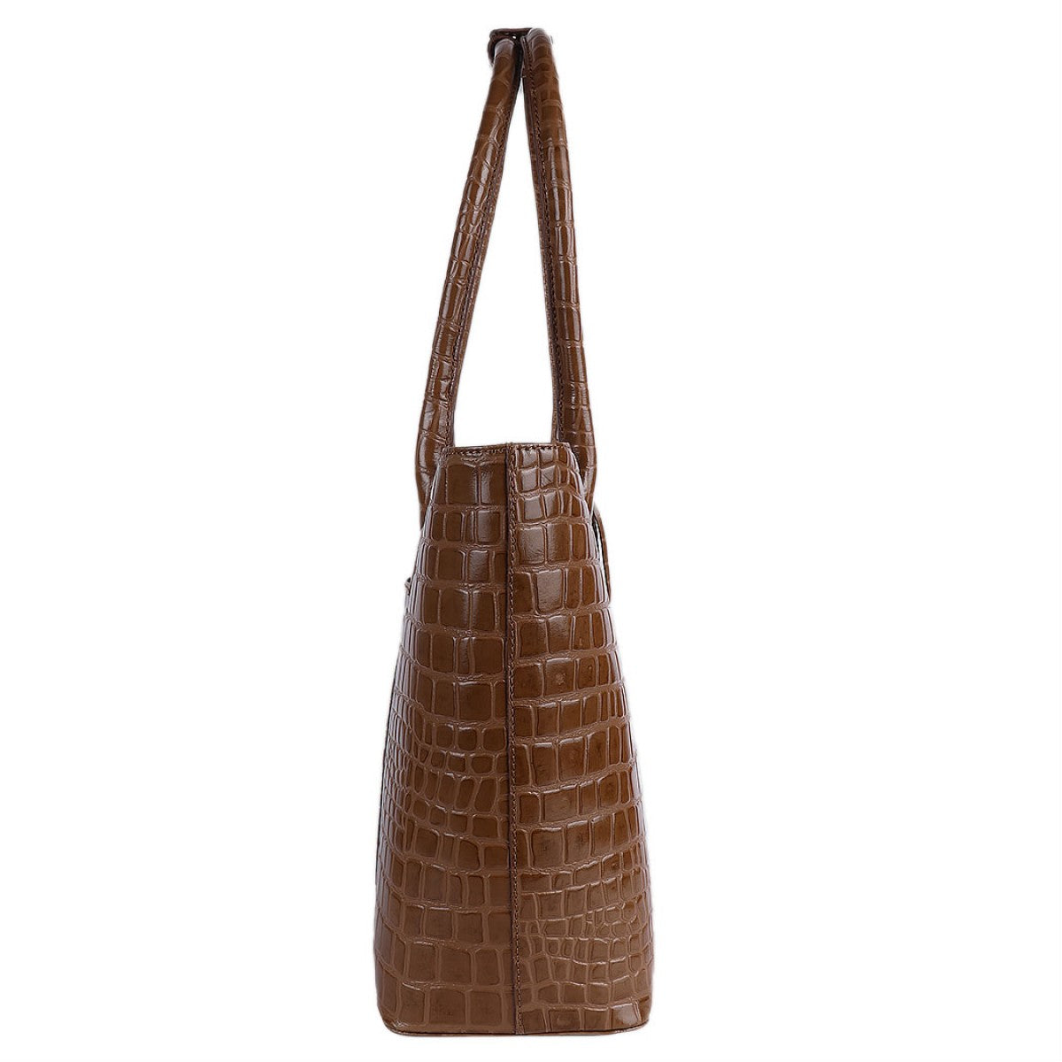 Виконана із глянсової телячої шкіри з імітацією шкіри крокодила. Завдяки немаленьким ручкам її можна носити як на плечі так і в руці. Закривається на металеву блискавку.