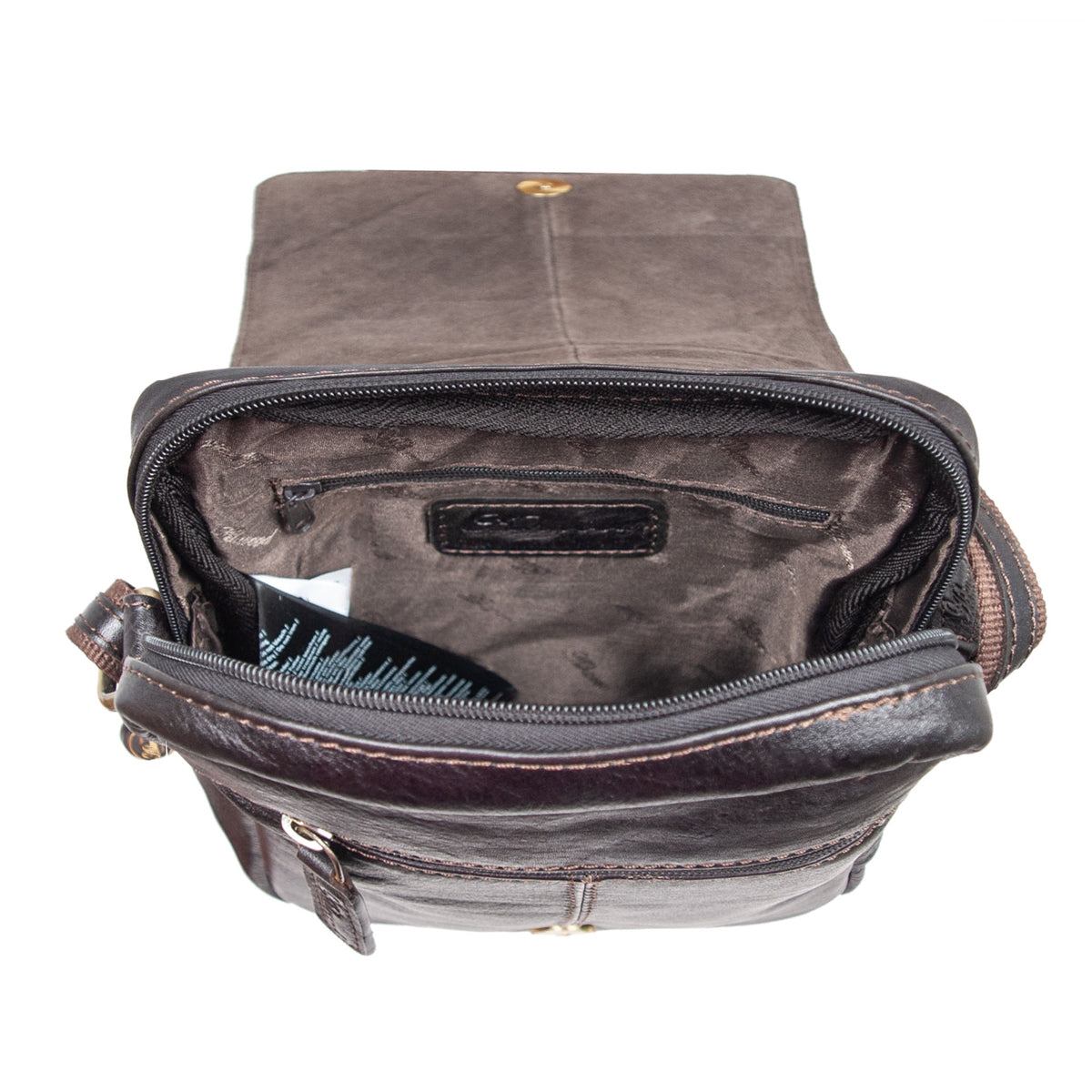 Шкіряна сумка-месенджер Jerry Brn від торгової марки Ashwood є незамінною для ділових чоловіків. Дуже компактна та зручна, підійде для носіння всього необхідного в активний робочий день: телефону, документів, гаманця, блокнота з ручкою, планшета та інших невеликих предметів. За рахунок свого невеликого розміру з нею дуже зручно пересуватися як у громадському транспорті, так і в машині. Виконана з м'якої високоякісної глянсової телячої шкіри.