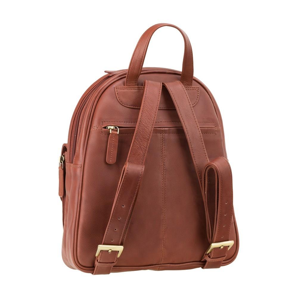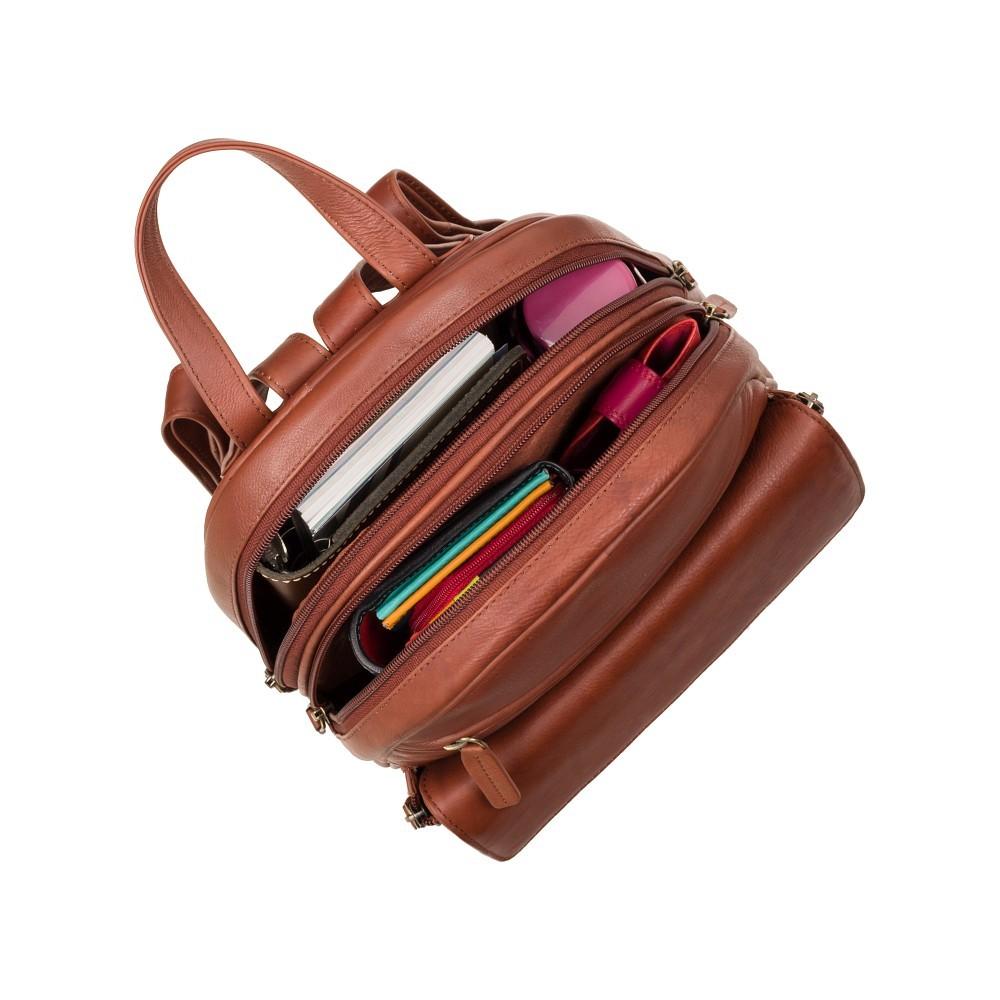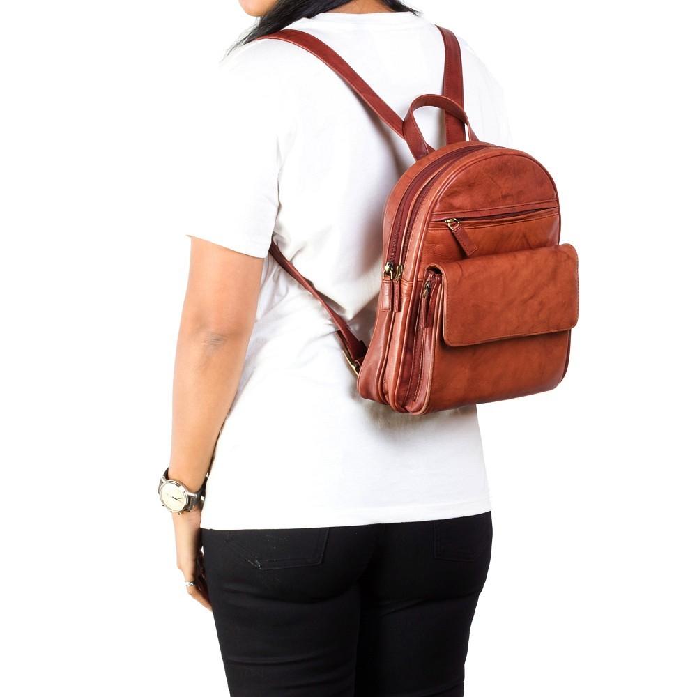 Жіночий рюкзак середнього розміру виготовлений з м'якої шкіри з матовою фактурою. Має два внутрішніх відділення на блискавках, в одному з яких є одна невелика внутрішня кишенька, також на застібці-блискавці. З лицьового боку – маленьке відділення на блискавці та кишеня на клапані. З зворотного боку - плоскі кишені на блискавці, зручні ремені, петелька для носіння в руці.
