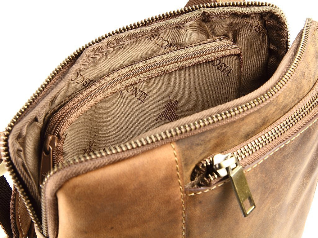 Шкіряна сумка-месенджер 15056 від торгової марки Visconti незамінна для ділових чоловіків. Дуже компактна та зручна, підійде для носіння всього необхідного в активний робочий день: телефону, документів, гаманця, блокнота з ручкою, планшета та інших невеликих предметів. За рахунок свого невеликого розміру та плоскої форми з нею дуже зручно пересуватися як у громадському транспорті, так і в машині.