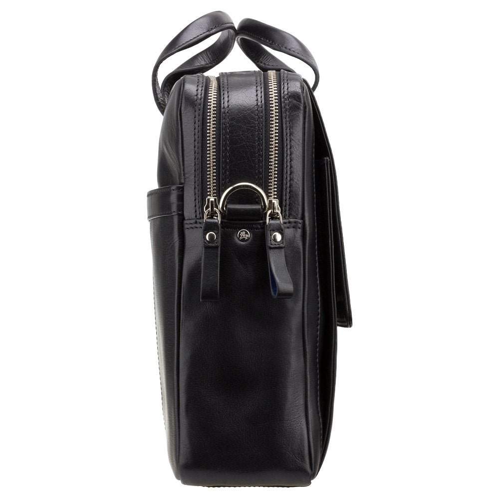 Сумка для ноутбука ML24 Anderson Black від торгової марки Visconti є незамінною для ділових чоловіків. Усередині поміститься ноутбук, планшет, а також папки з паперами та документи. Є додатковий тканинний чохол для ноутбука 15 `діагональ. Сумка виготовлена з м'якої високоякісної телячої шкіри. Колір чорний.Деталі товару