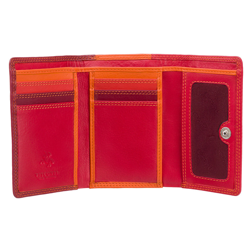 Жіночий гаманець із телячої шкіри. Відмінна особливість гаманця Visconti RB39 Biola - у яскравому забарвленні з трьох основних відтінків: червоного, оранжевого та бордового.