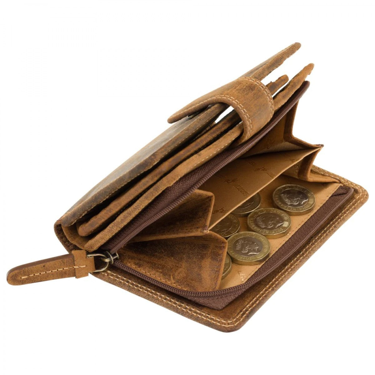 Дана модель подвійного додавання і закривається на хлястик з кнопкою. Усередині є 9 слотів під пластикові карти, 1 віконце для фотоправ на перекидній секції, а також кілька прихованих відділів. Подвійне відділення для купюр, як і монетниця, яка закривається на блискавку.