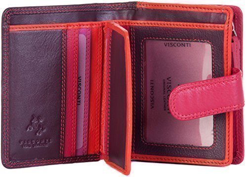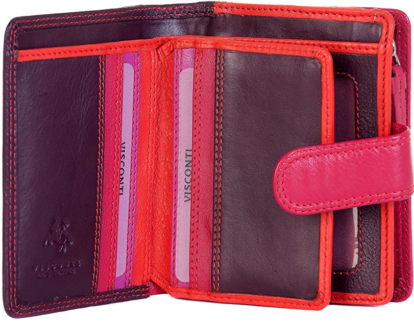 Невеликий жіночий гаманець із телячої шкіри. Відмінна особливість гаманця Visconti RB40 Bali - у яскравому сливовому забарвленні з трьох основних відтінків: сливового, малинового та оранжевого.