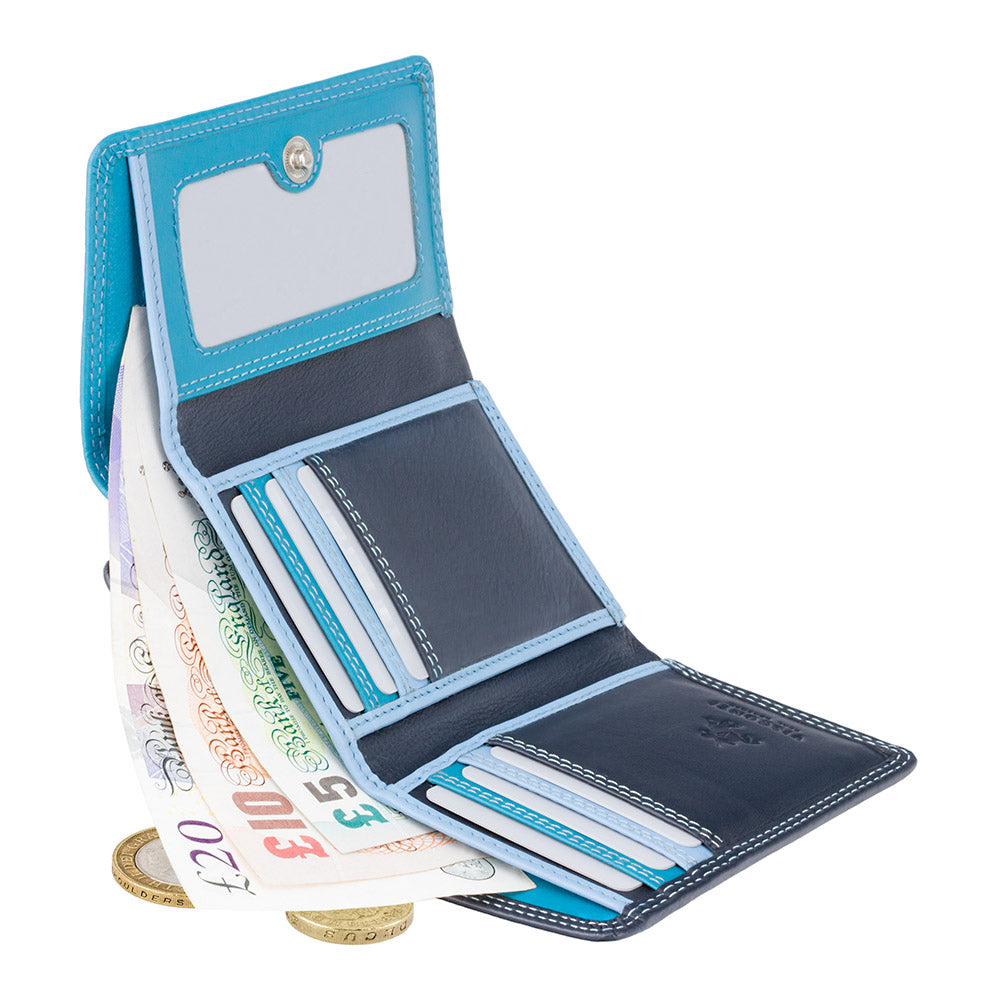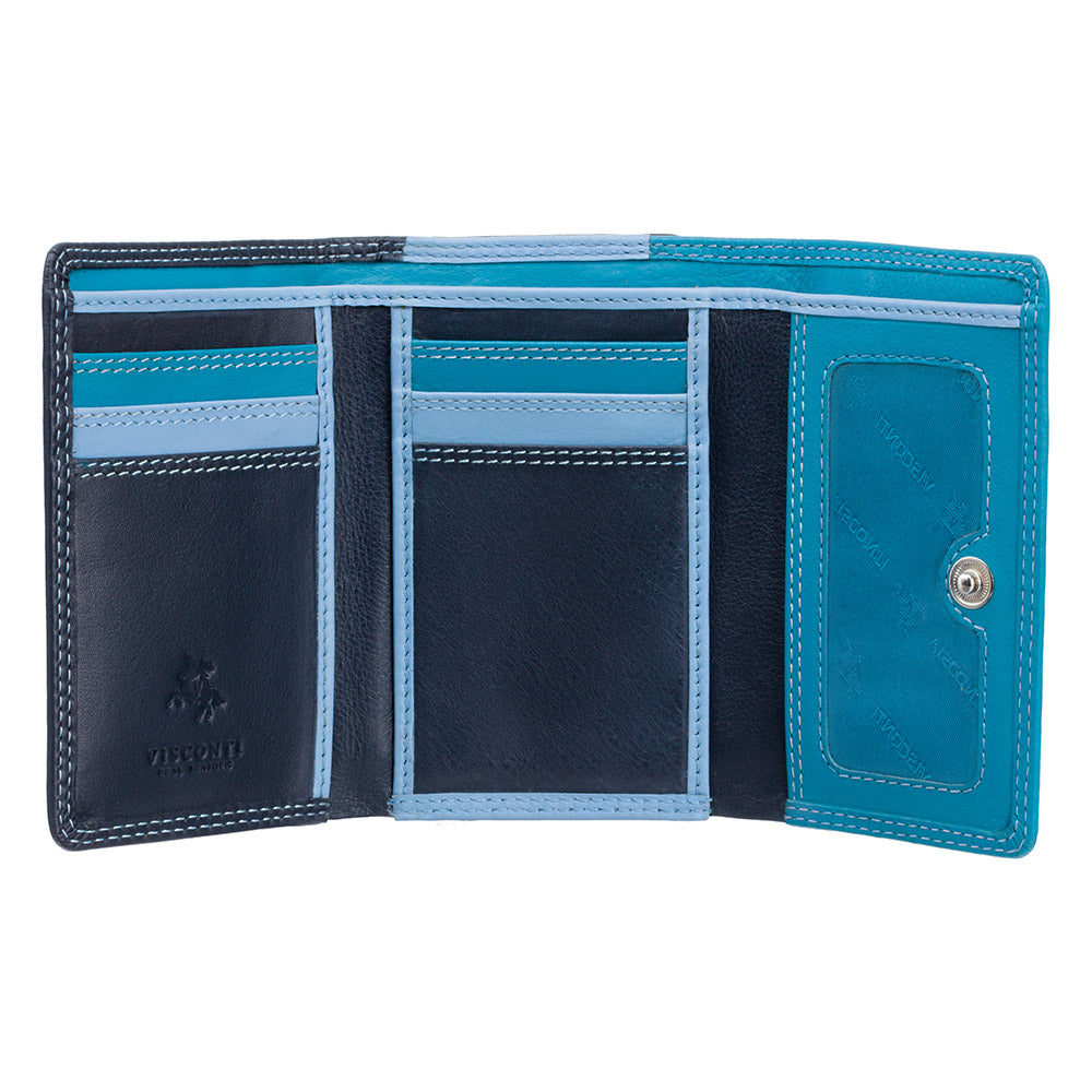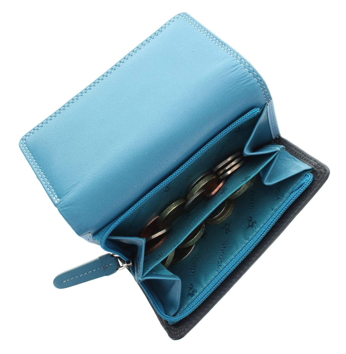 Жіночий гаманець із телячої шкіри. Відмінна особливість гаманця Visconti RB39 Biola - у яскравому синьому забарвленні з трьох основних відтінків: темно-синього (майже чорного), блакитного та світло-блакитного.