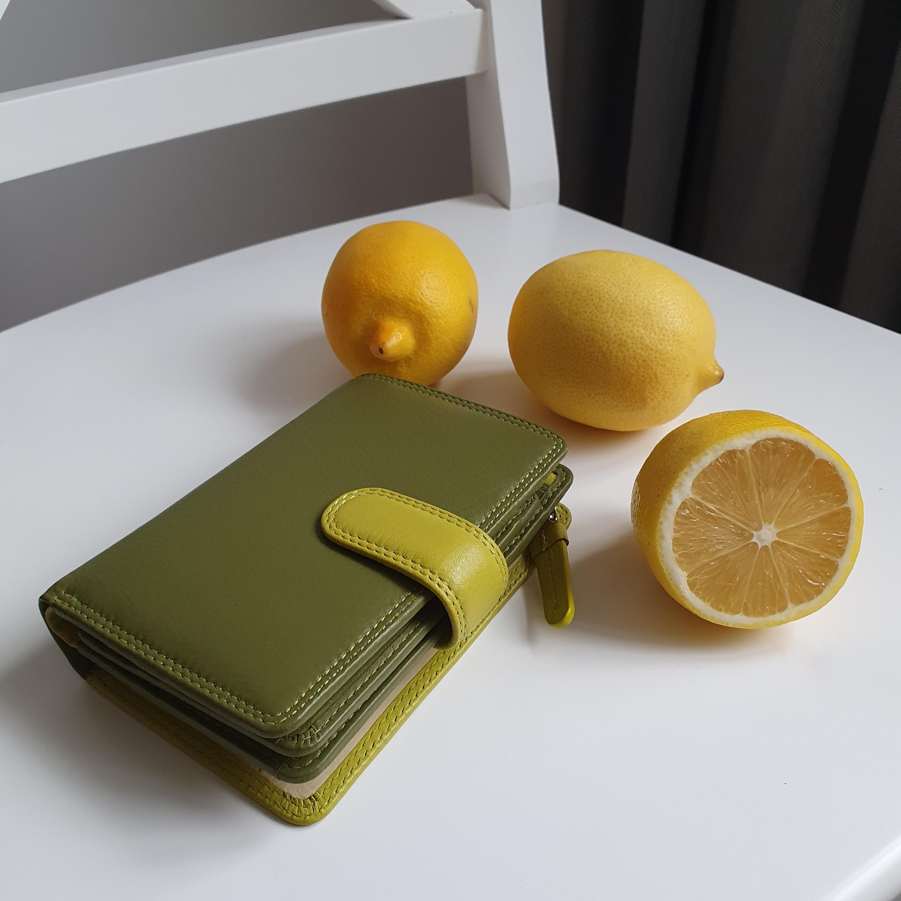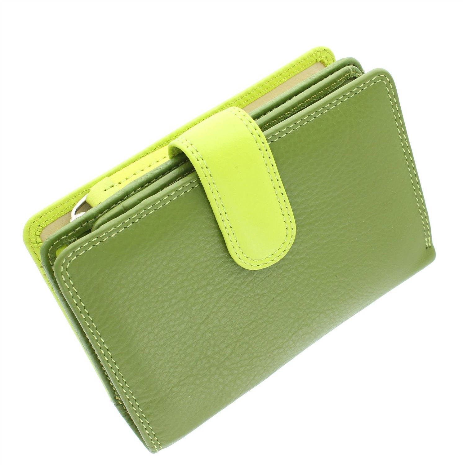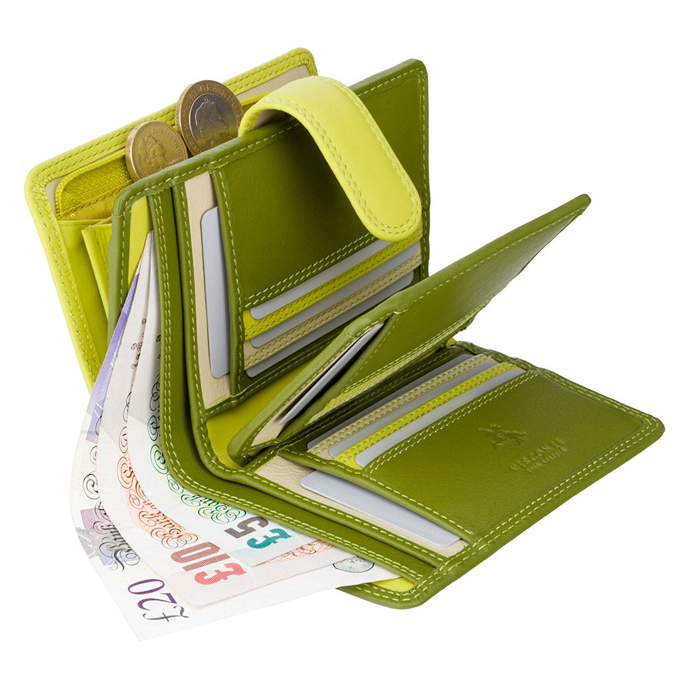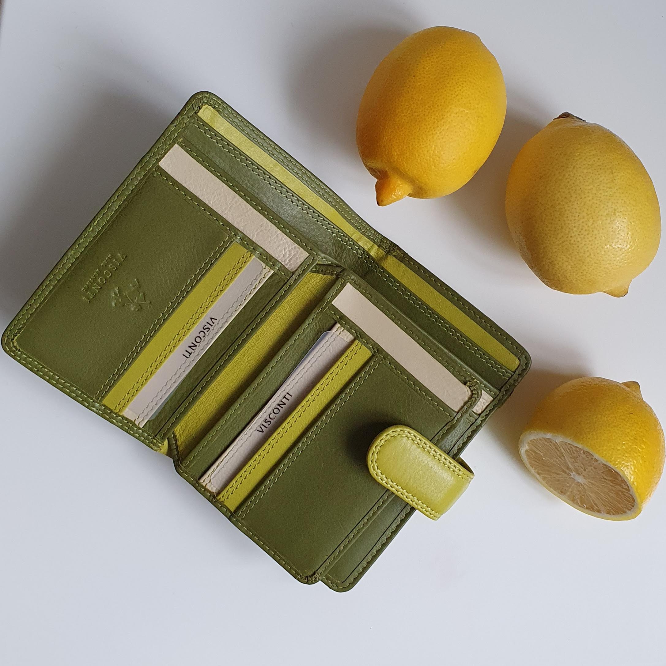 Жіночий гаманець із телячої шкіри. Відмінна особливість гаманця Visconti RB51 Fiji - у яскравому забарвленні з трьох основних відтінків: зеленого, лаймового та бежевого.
